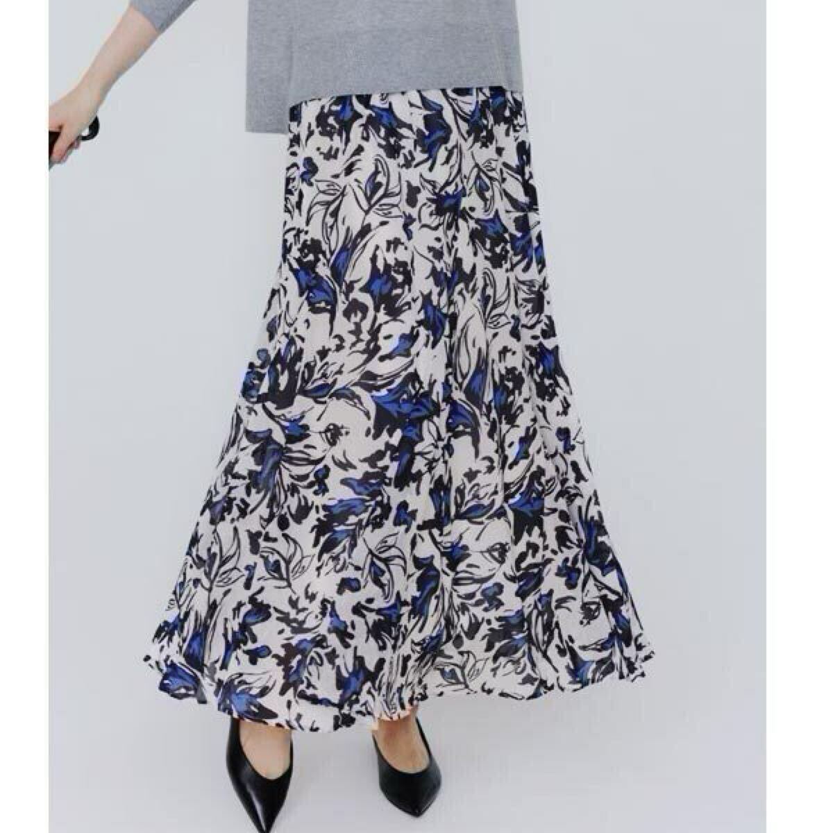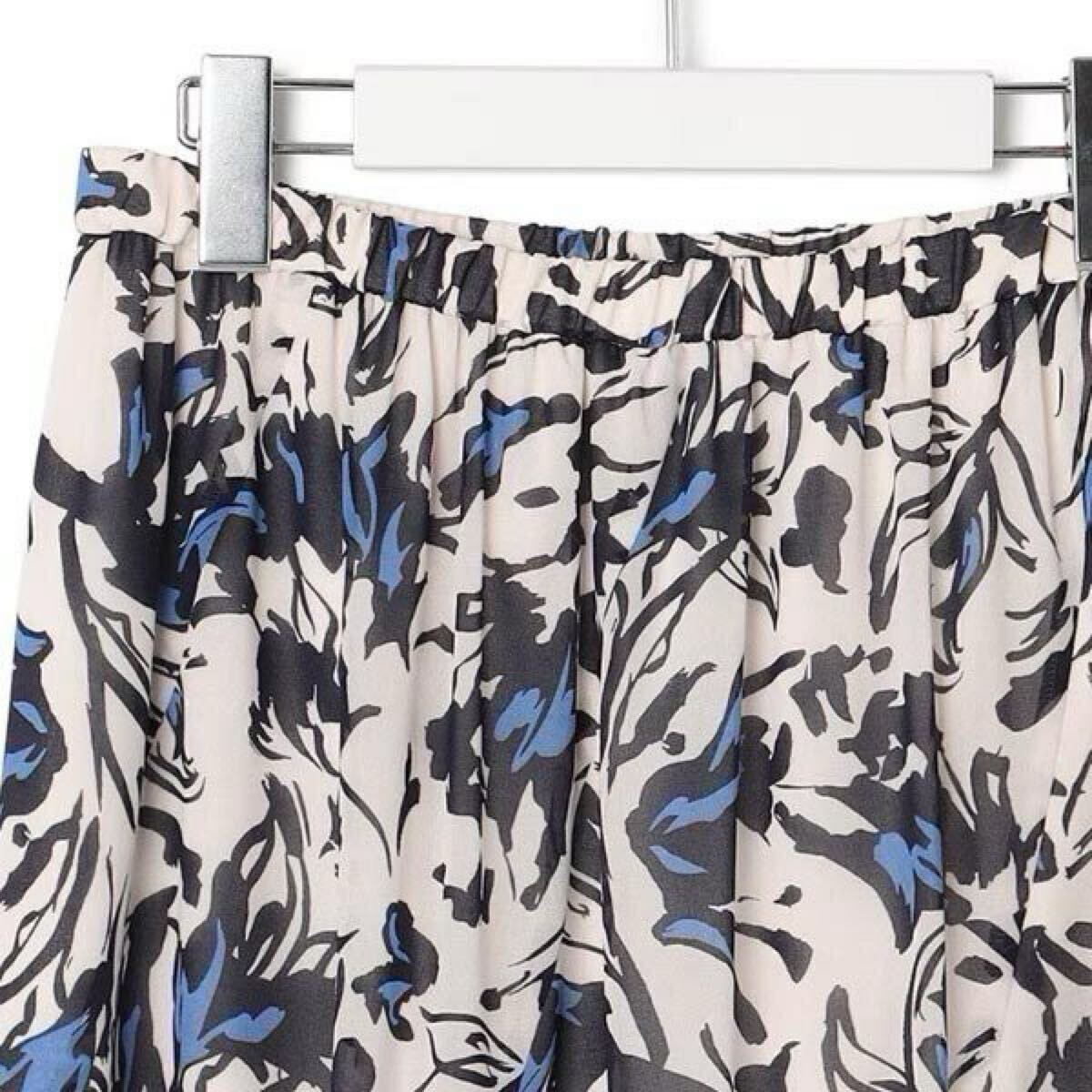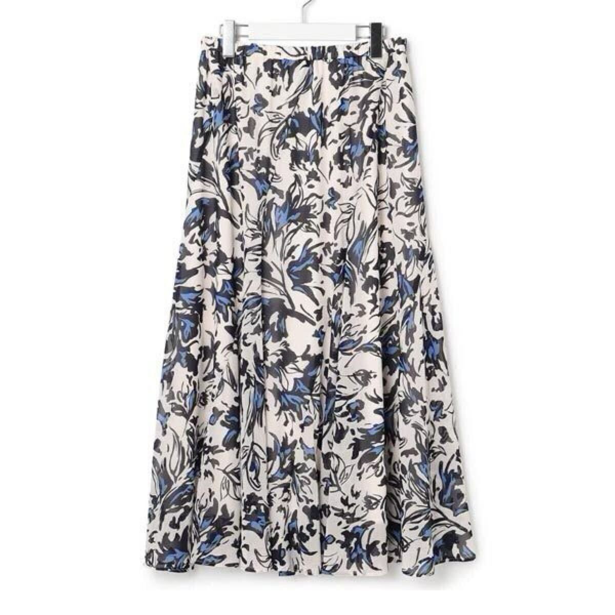 23区【洗える】ニュアンスフラワープリント フレア スカート(青系・38・Mサイズ)新品