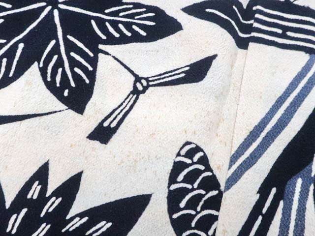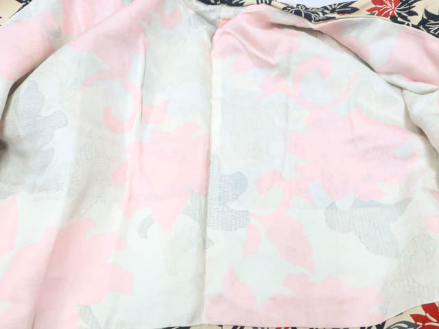 リサイクル商品のため、表全体や羽裏などその他所々にシミがございますが着用可能なお品です。 地色は、薄ベージュです。 1枚目の画像が近いお色かと思われます。 素材は正絹です。 |