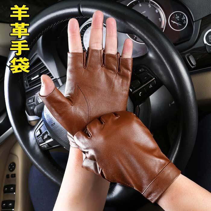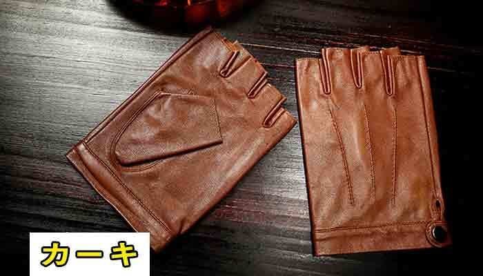 羊革手袋 メンズ レザー手袋 指なし 滑り止め タッチパネル対応 羊革手袋 レザーグローブ 耐磨 男性用 羊革手袋 ☆カーキ