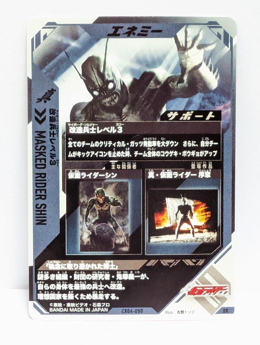 「仮面ライダーバトル ガンバレジェンズCX4弾 改造兵士3 (SR CX04-060)」を出品します。「おまとめ」可能な方は4枚までミニレター送料85円でお取扱いできます。5枚以上の場合は定形郵便で送料別途計算となります。