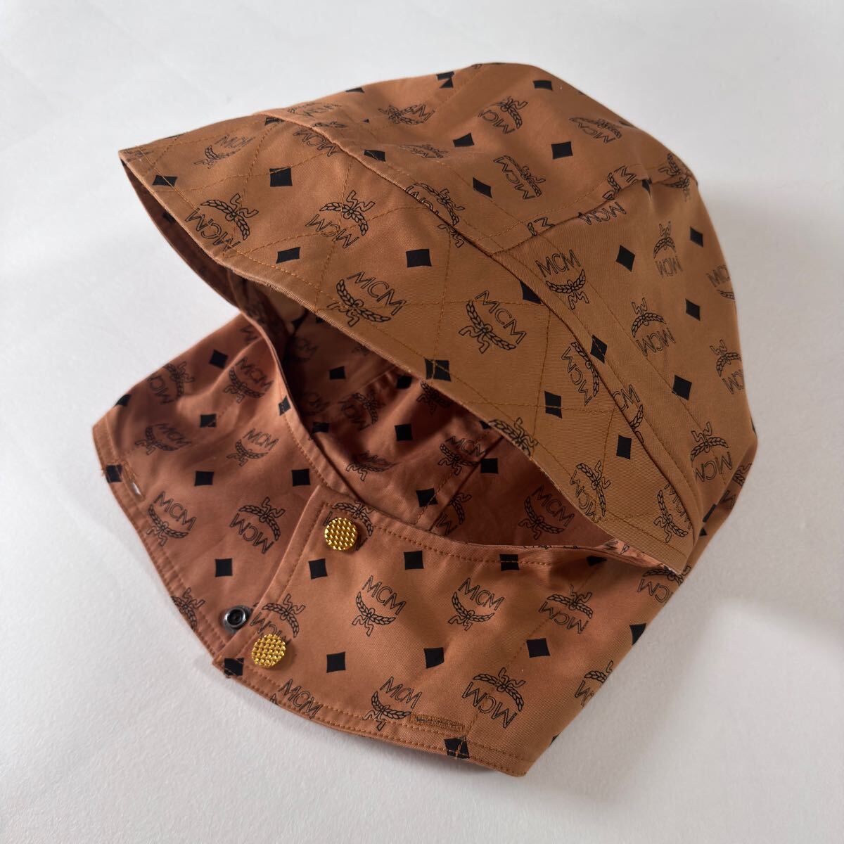 クラシックなディテールのトレンチコートにMCMモノグラム柄を組み合わせたデザインが秀逸な名品です。