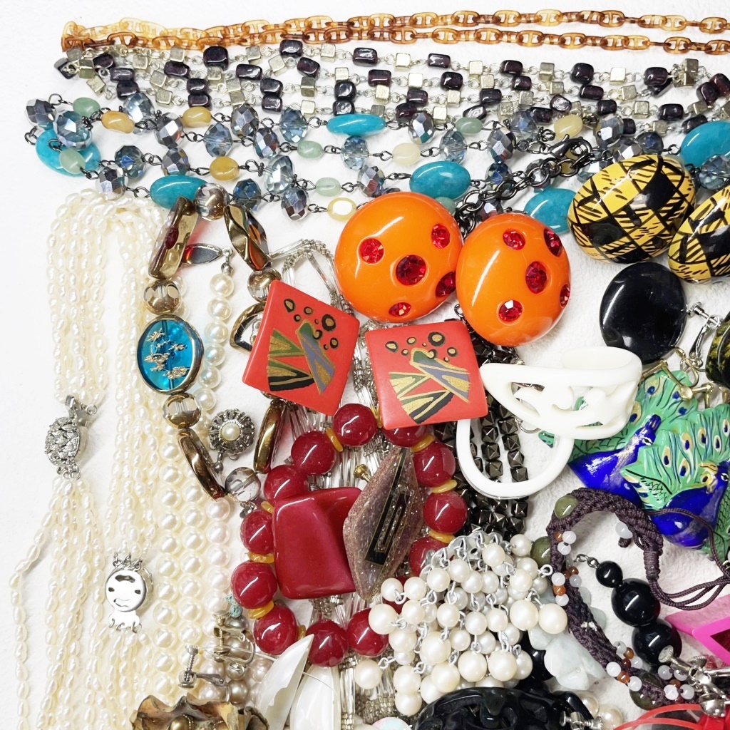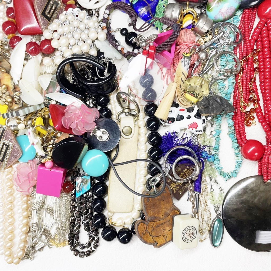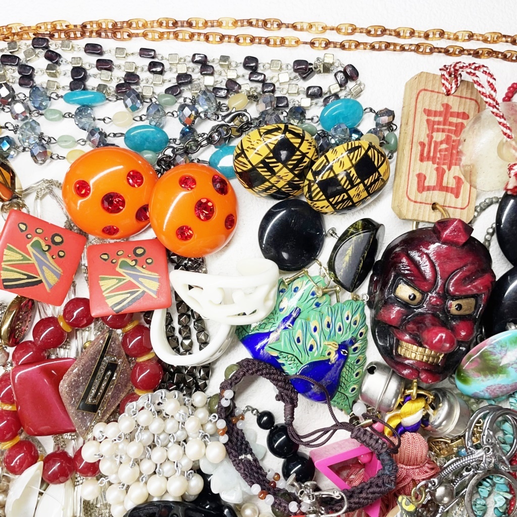 ▼商品特徴 商品に興味をもっていただき、ありがとうございます。 写真にありますアクセサリー類 まとめ商品です。 ◆商品 : アクセサリー類 卸 ・画像にあります様に多種多様なアクセサリーになります。 ※各商品材質など一切査定しておりませんのでご了承ください。 ◆総重量 : 1,060g ◆状 態 : USED ・金具の壊れているもの、傷、汚れがあるものもあります。 ※返金には対応出来ませんのでご了承ください。 ※同梱可能な場合もございますのでその際はおまとめ取引をご選択ください。 ※配送方法がヤフネコ又ゆうパック2種類ございますので同梱出来かねる場合がございます。 こちらで他にも出品中。Crew・actショップ↓↓ ![]() | ||