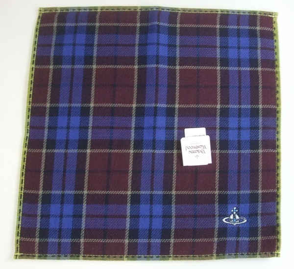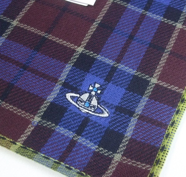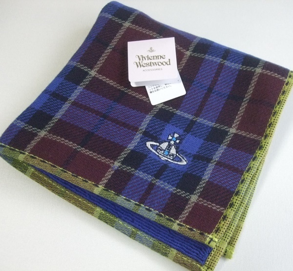Vivienne Westwood ヴィヴィアン・ウエストウッド タータンチェック タオルハンカチ 未使用品 ブルー系 オーブ刺繍