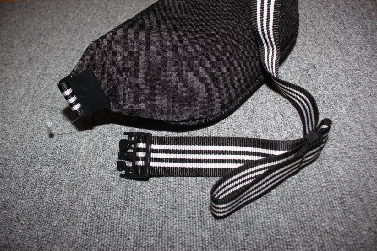 ポリエステルの裏地上部開口部にジップ付き前にジップポケット長さ調節できるウエストストラップ
