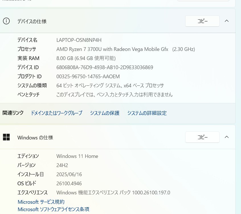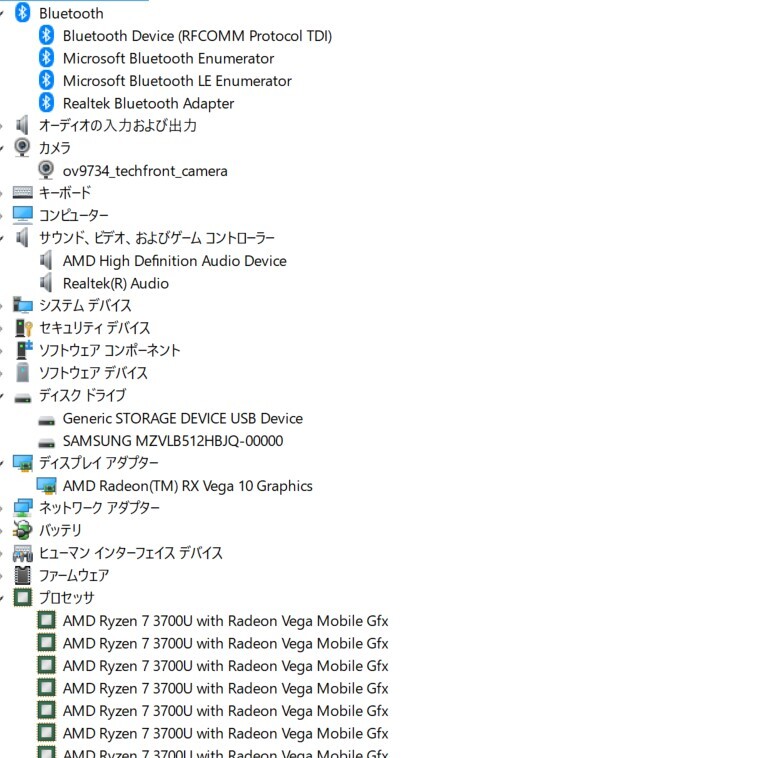 ・CPU:AMD Ryzen 7-3700U@2.30GHz