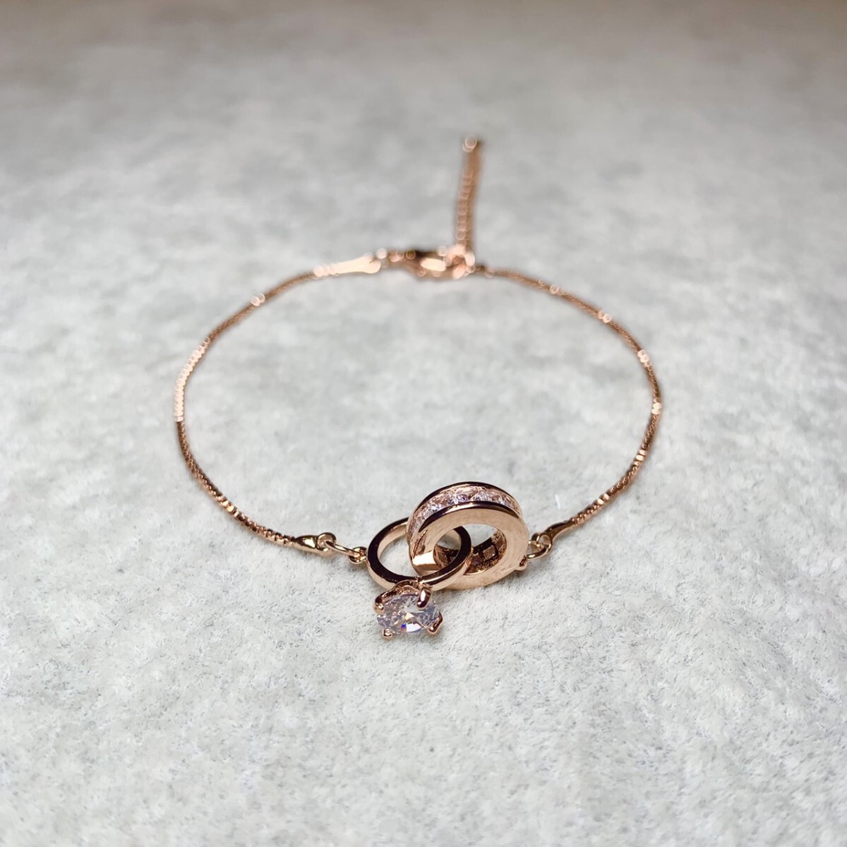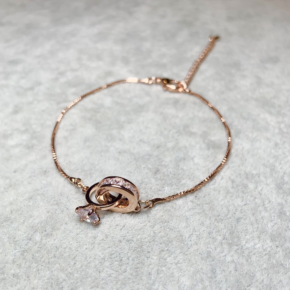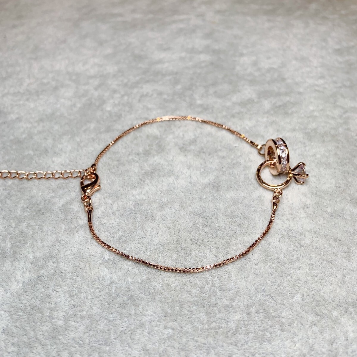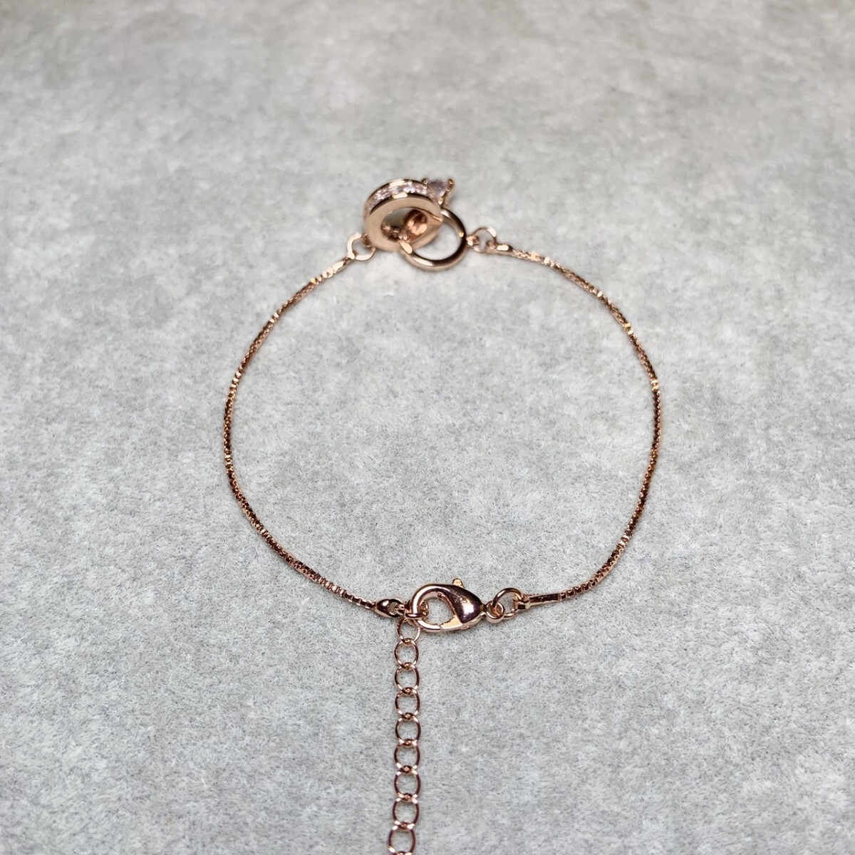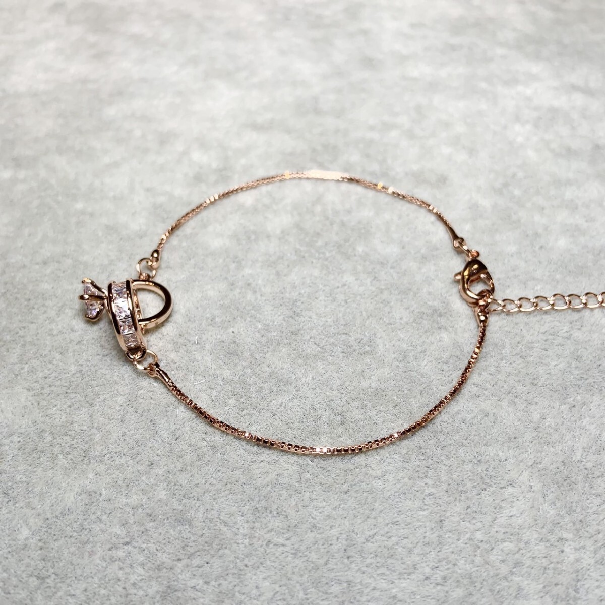 *繊細に煌めくCZダイヤをあしらったピンクゴールドブレスレット。華奢な輝きが手元を上品に引き立て、洗練された印象をプラス。