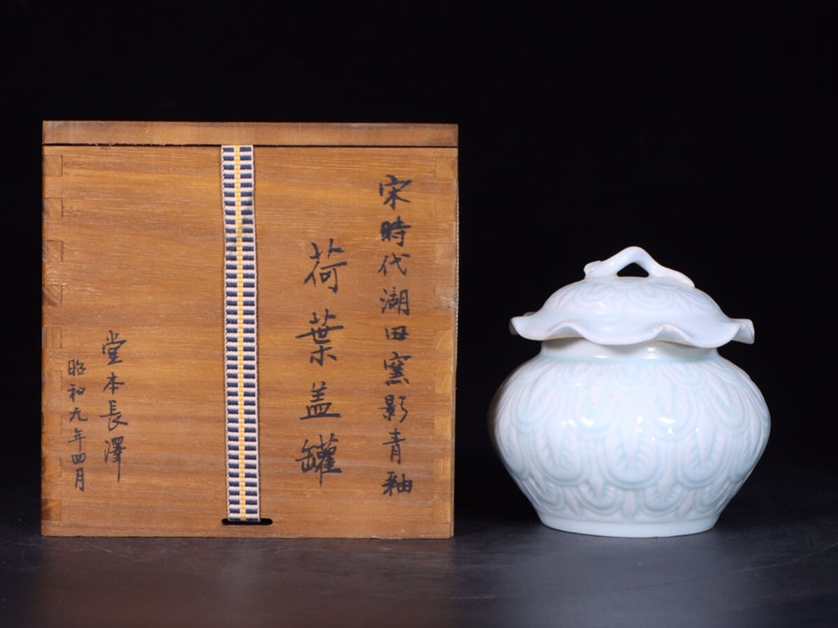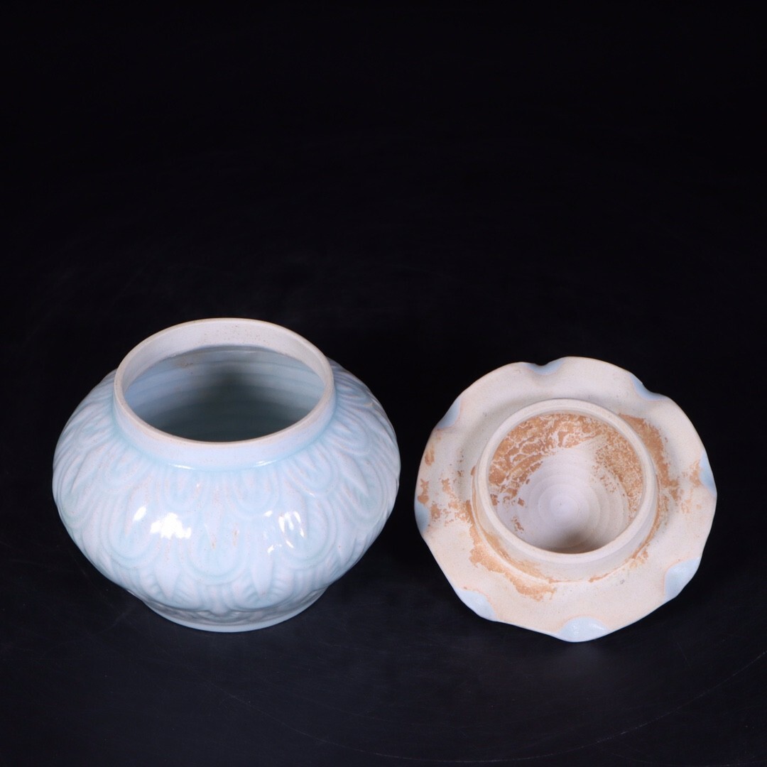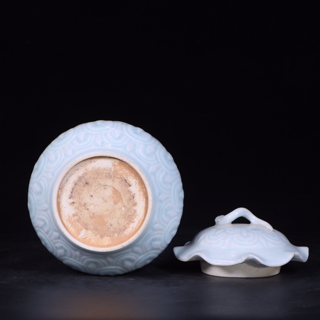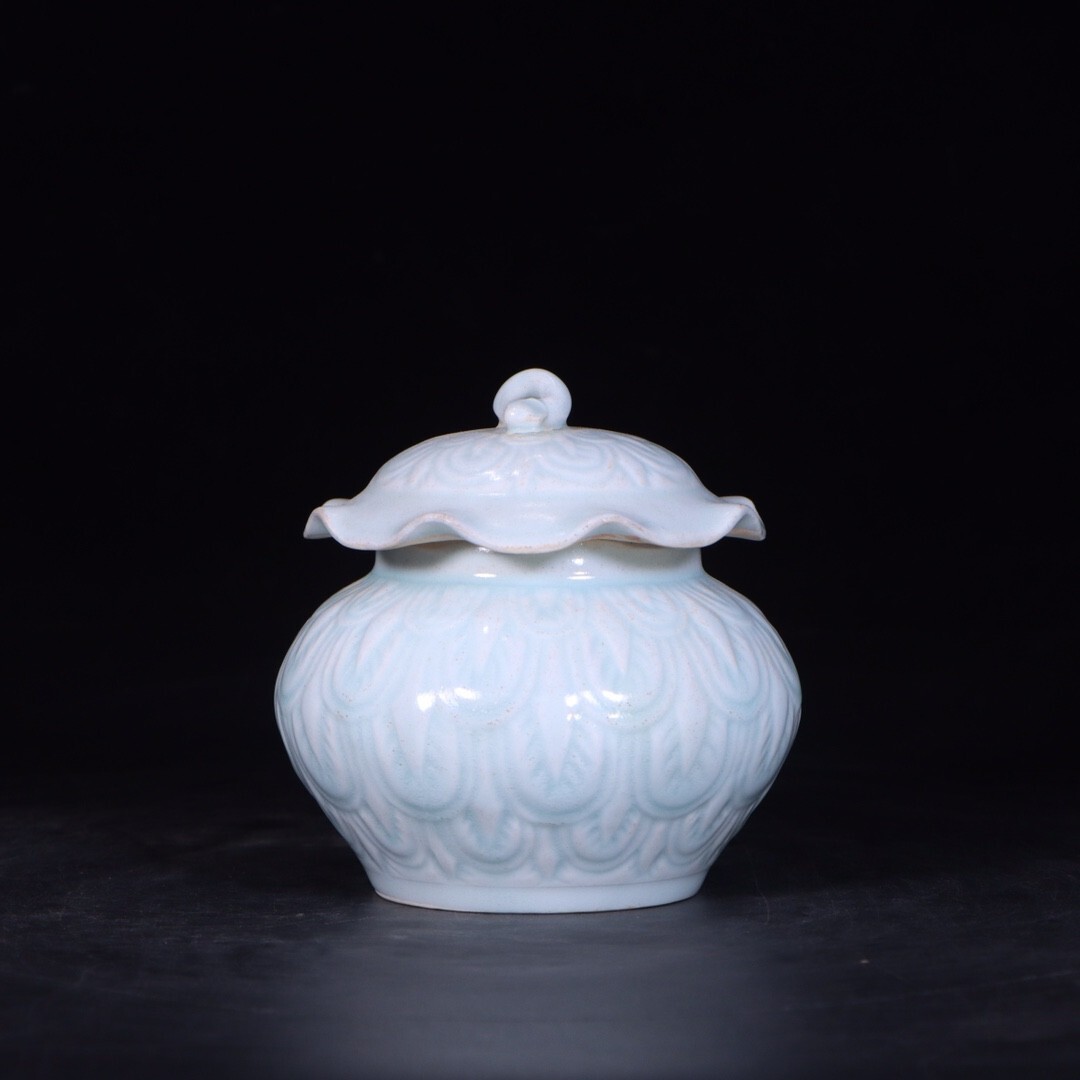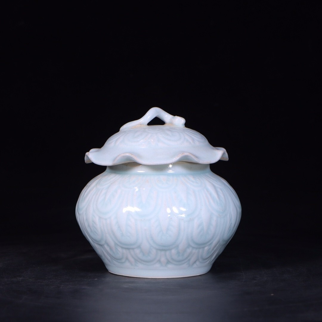 【瓏】陶磁器 湖田窯 影青釉 荷葉蓋罐 宋代 染付 置物擺件 古賞物 古美術 陶芸 蔵出