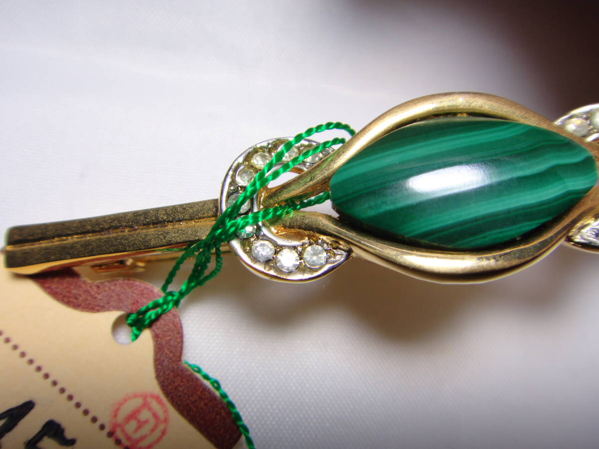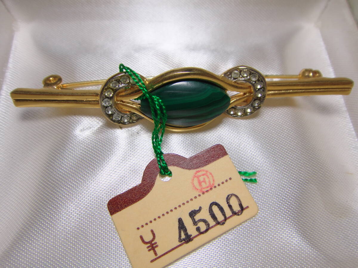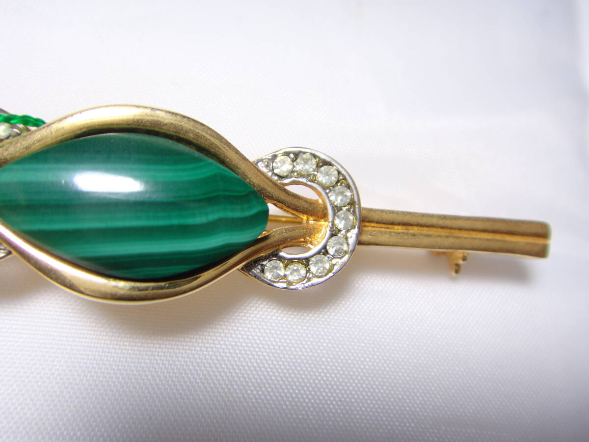 天然石 マラカイト ブローチ スッキリデザイン レトロ 未使用品 ヴィンテージ 服飾小物 D595