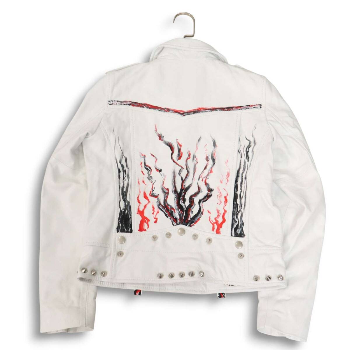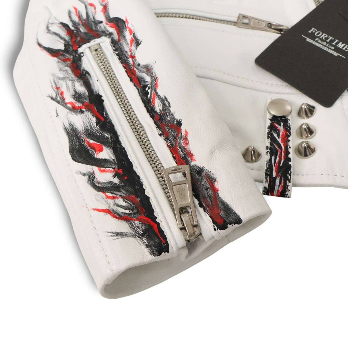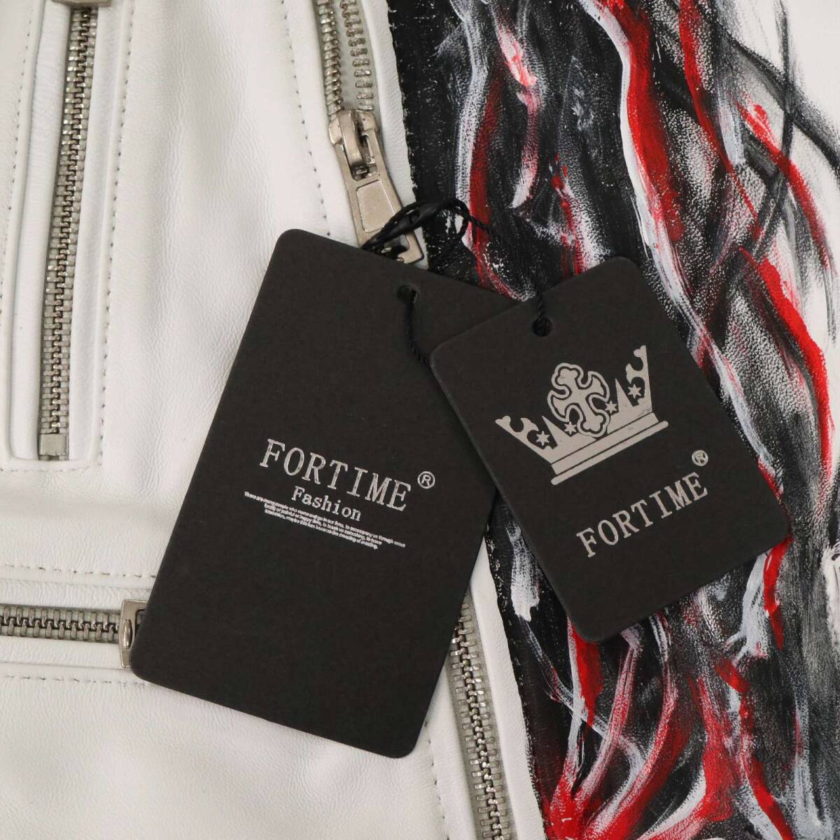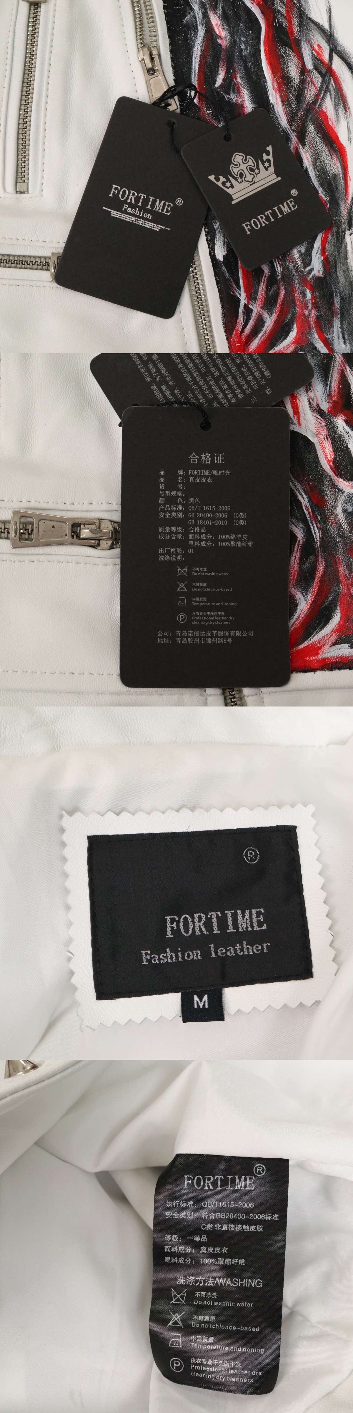 新品 未使用★ FORTIME フォータイム ペイント加工 本革 リアル レザー ダブル ライダース ジャケット Sz.M レディース 白