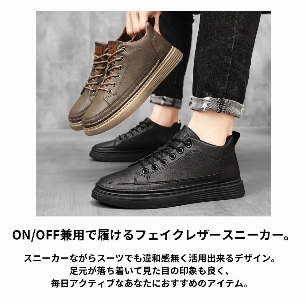 レザースニーカー メンズ フェイクレザー 革靴 ショートブーツ カジュアル フォーマル 歩きやすい