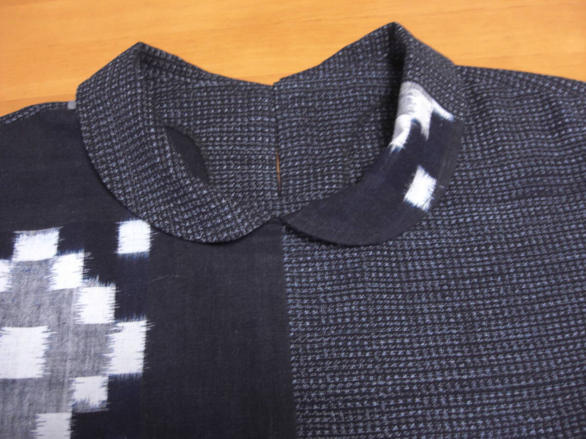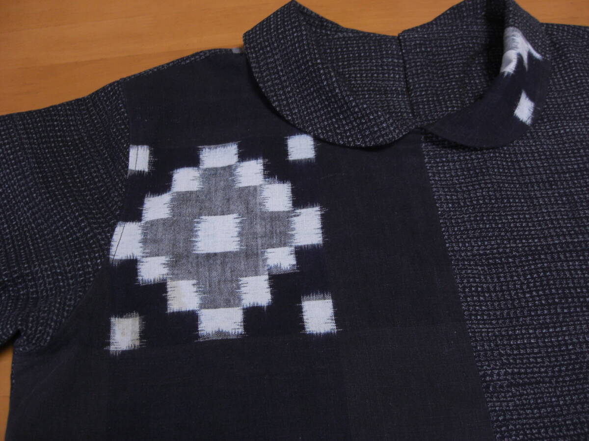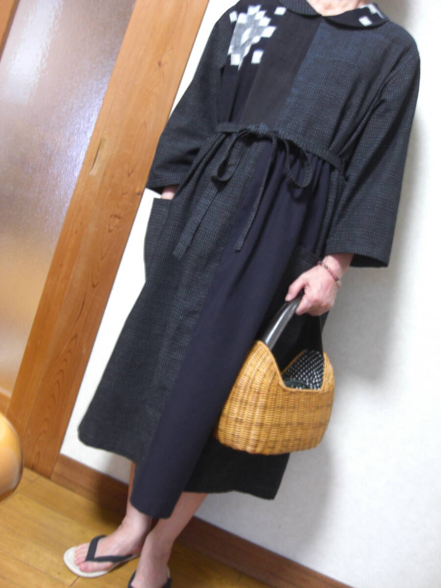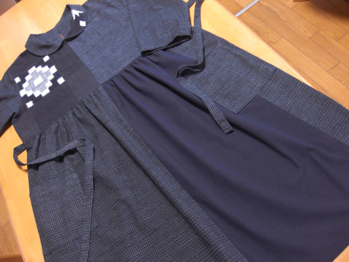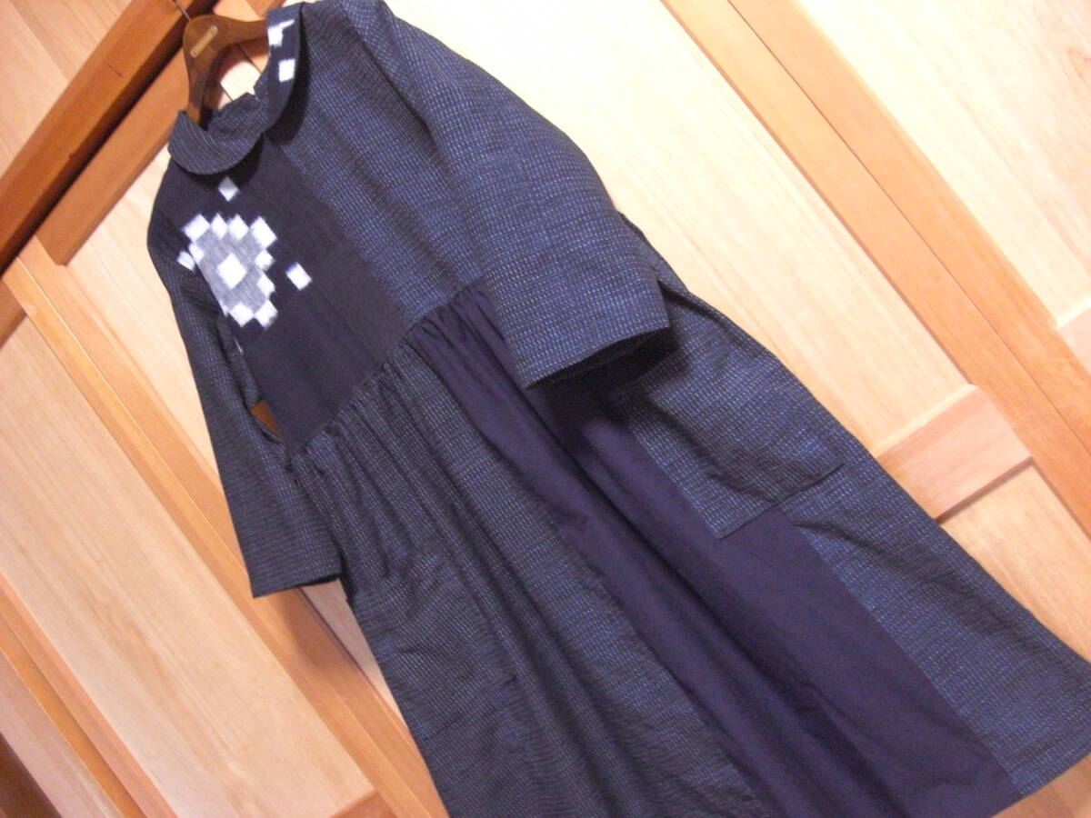 | Biwa着物リメイク 書生絣ワンピース 絵絣 久留米絣 久留米織 藍染 木綿 ゆったり 古布 アンティーク 手作り 検>備後絣 伊予絣 |
