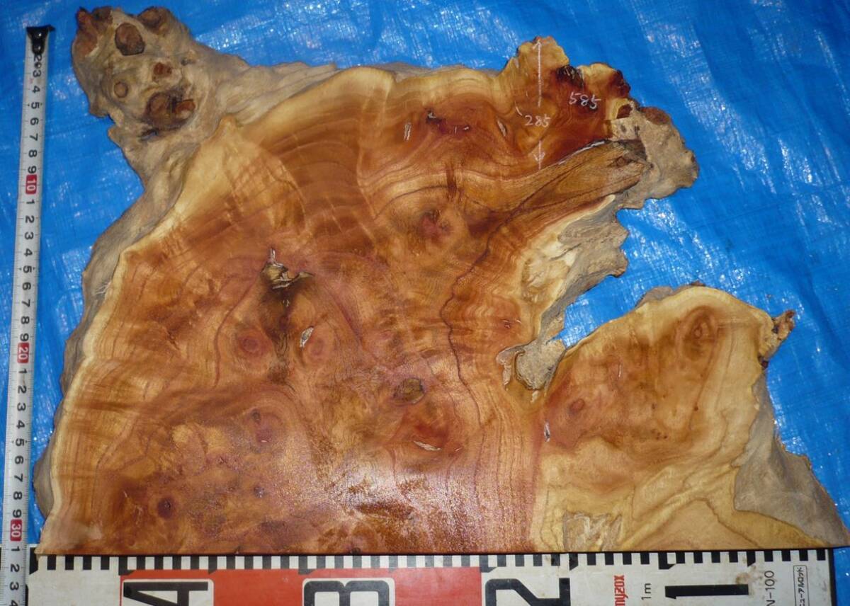 ★栴檀 センダン★トラフ 茶ピンク色、虎杢・厚35mm【585】花台、ハンドル、クラフトなど小物制作に ●サイズ● 長さ440mm・幅0~285(320)mm・厚35mm・・★ (多少の誤差が在る場合が有ります.) ●状態● 傷・ヒビ割れ・木口割れ・未鉋部分・欠け部分・入り皮部分・鉋傷(逆目・段差)、その他見落としがある場合もございます。 3面プレーナーに通してありますが、刃こぼれ跡のライン・傷が在るかも?。 (プレナー加工は反り落とし、厚みだしですので刃の状態、木肌の質により逆目や毛羽立ちなどはございます。) 木目を見るために水で濡らして撮影しています。 乾燥2年材・画像を良くご覧下さい。 ●注意事項● ◆◆当店の出品は完成品では有りませんので、木工用・DIY材料としてお使いください。◆◆ 割れ・節・傷・汚れ・反り・虫食い跡・サカメ・プレナーの段付き等ありますので、 サンダー等で仕上げる前提でお願いいたします。 メジャー・定規は商品ではありません。 無垢材ですので傷・割れ・穴・虫穴・反り・捻じれ・変色・カビ・等がで在る事が在ります。 神経質な方の入札は、絶対にお断りします。 木目を見るために水で濡らして撮影しています。 ◆◆発送は出来るだけまとめて発送しますが、商品代金のお支払いは個別でお願いします。◆◆ オークション終了日より3日以内に連絡を頂ける方でお願いします。 3日以内までに連絡頂け無い場合は購入意志が無いと判断し 次点繰上げを行いますのでご了承ください。 その際にシステム上非常に悪いの評価が付くことはご理解ください。 ■送料について■ ・送料は元払い限定(着払いは対応していません)。 ***ヤマト便で発送致します。*** (100サイズで) **複数落札いただくと送料が割安になります (25kgまでは1個で発送いたします。) ***ご入金確認後、ただちに発送いたします。 ◆◆注意事項 ヤフーの落札メールにコメントがあります。◆◆ 当社の【URL】https://r.goope.jp/woodluck-suzuki