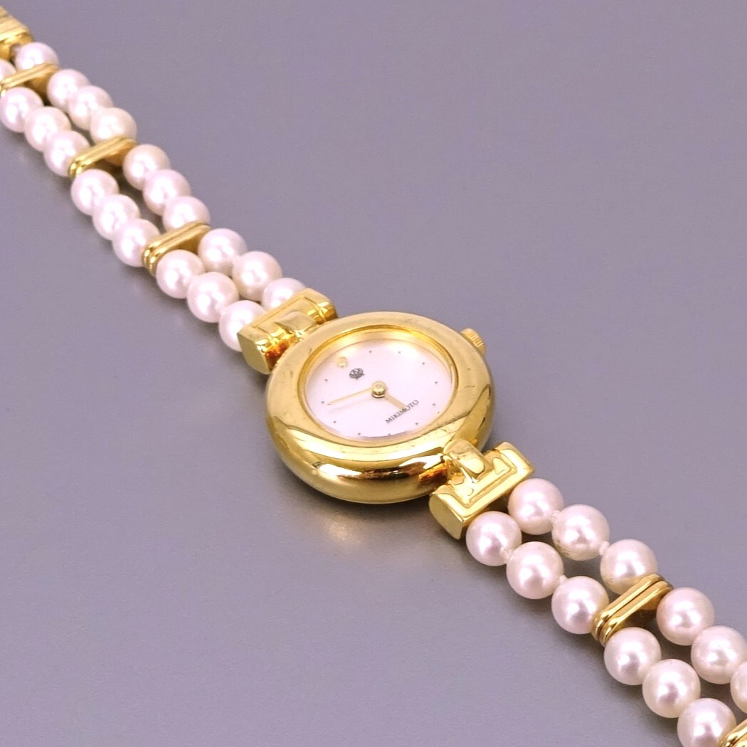 本物 現在稼働中■ミキモト JAL■腕時計 パール 真珠 ドレスウォッチ ブレスレット クォーツ ゴールド パール文字盤
