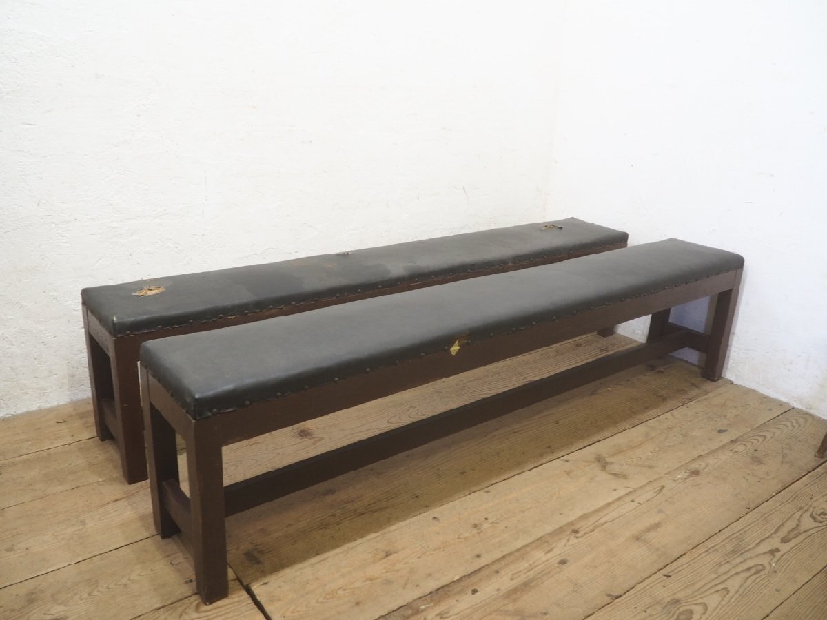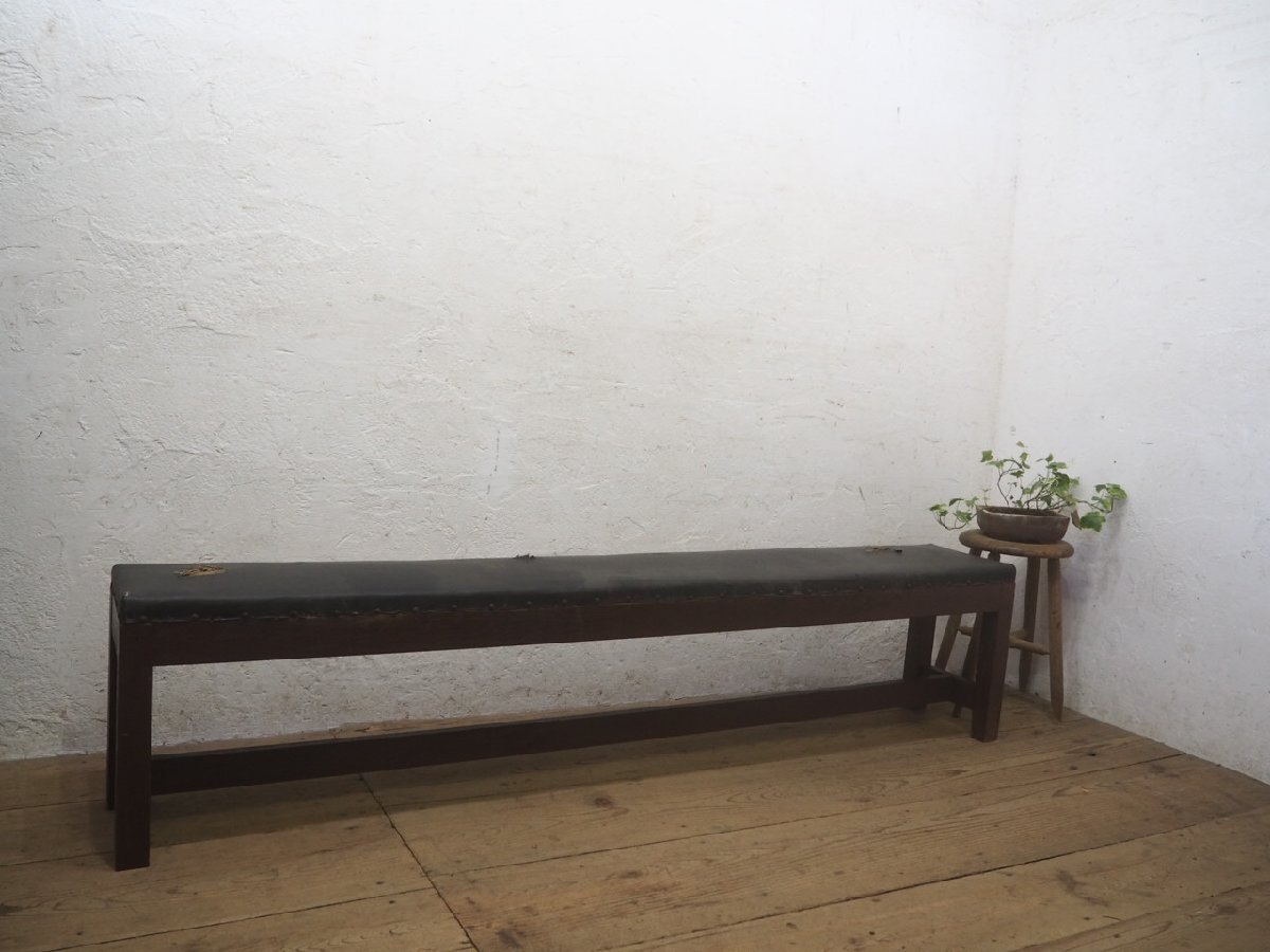タO0047◆②座面W180cm×D27cm◆ヴィンテージ◆レトロな古い木製ベンチ◆椅子 イス チェア 古家具 古道具 店舗什器L庭