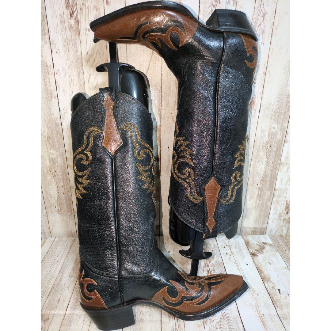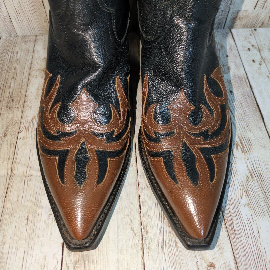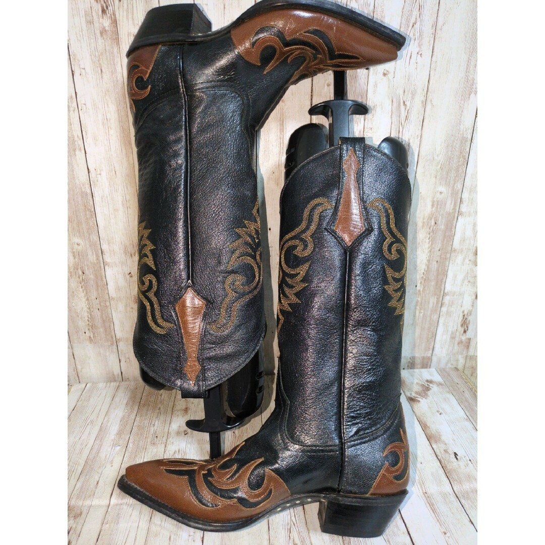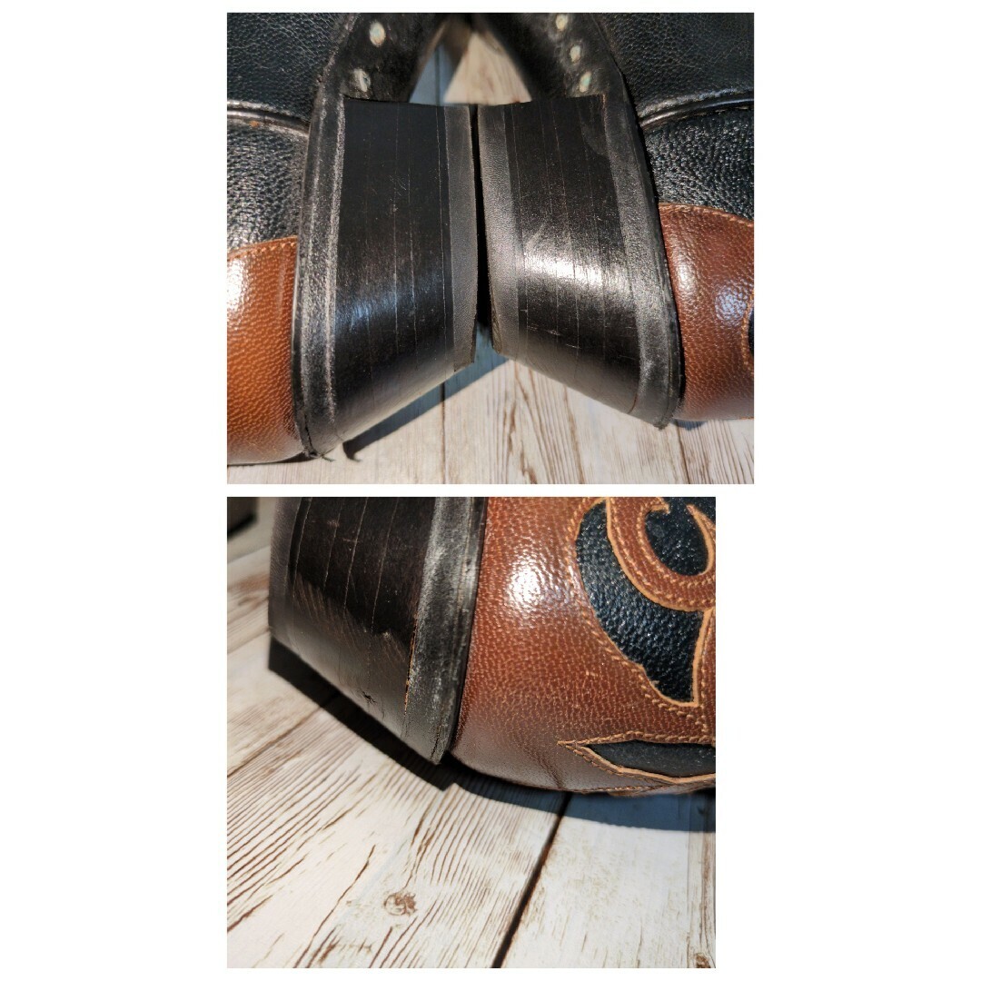 【Larry Mahan】ラリーマハン☆ウエスタンブーツ☆レザー☆6Bサイズ☆金ステッチ☆黒×茶×金☆レディース靴☆23cm相当