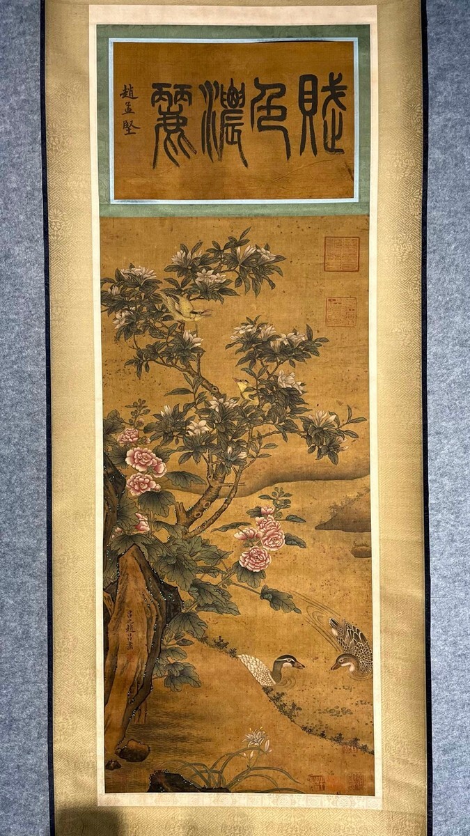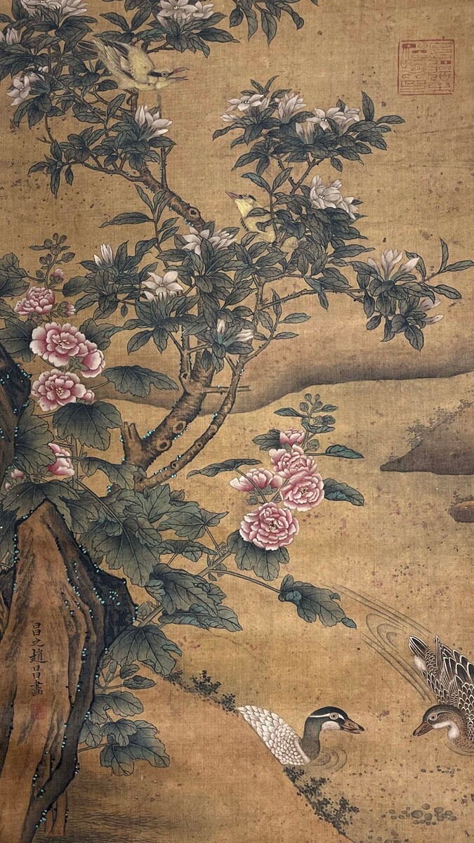 中国書画「北宋 趙昌 花鳥図」肉筆絹本 掛け軸 墨寶妙品 書画立軸 巻き物 古美術 旧蔵出