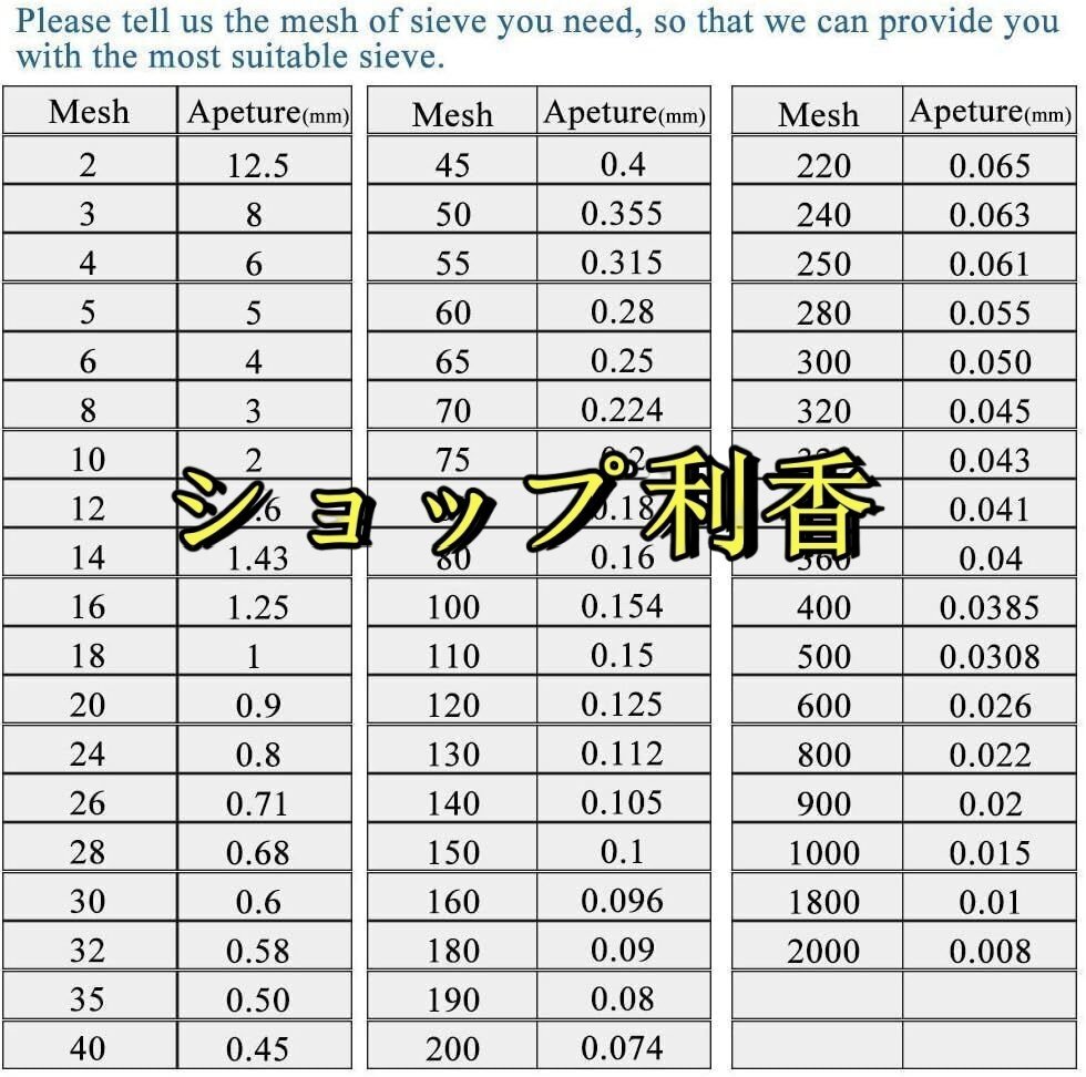 【メッシュの説明】:この振動ふるい機は80メッシュのスクリーン1つが装備されています。高速回転の振動モーターを採用し、異なるサイズの物質を迅速に徹底的に分離できます。高い選別効率と細かな選別が可能です。他のスクリーン(オプション10-200メッシュ)が必要な場合は購入前にお問い合わせください。