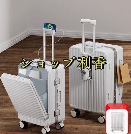 スーツケース キャリーケース 機内持ち込み 多機能 フロントオープン 前開き 大容量 43L USBポート付き 充電口 カップホルダー付き