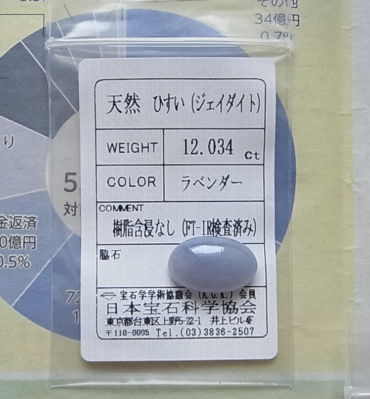 天然 ラベンダー 翡翠 ルース 12.034ct ソーティング付   検索 指輪 氷種 リング 鑑別書 ソーティング