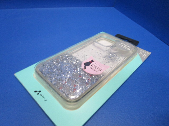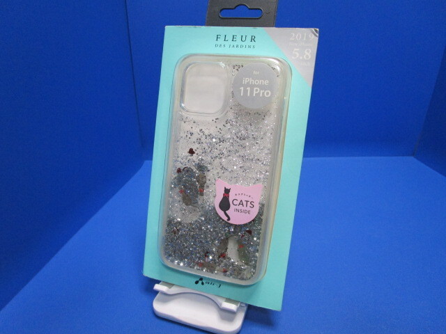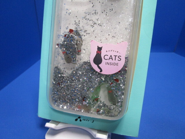 air-J iPhone11Pro キャットグリッター背面 ケース メがキラキラ流れていく 猫グリッター ミネラルオイルを使用