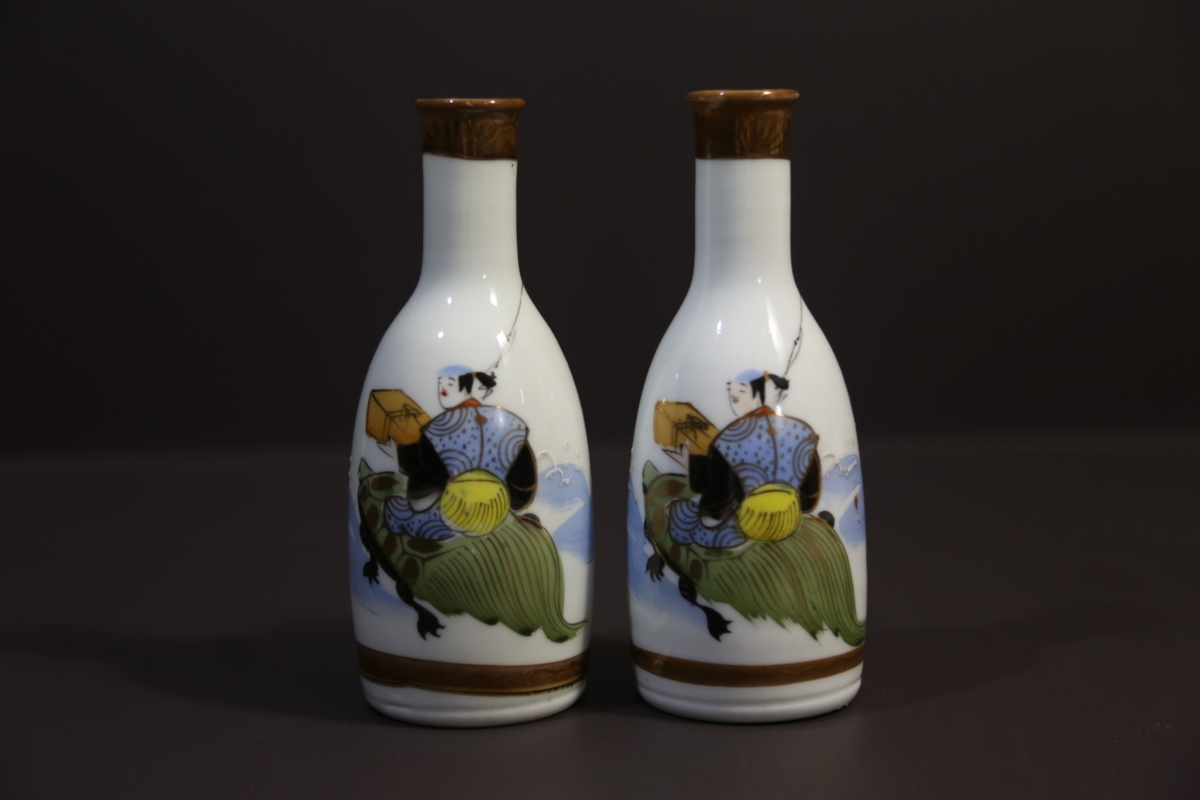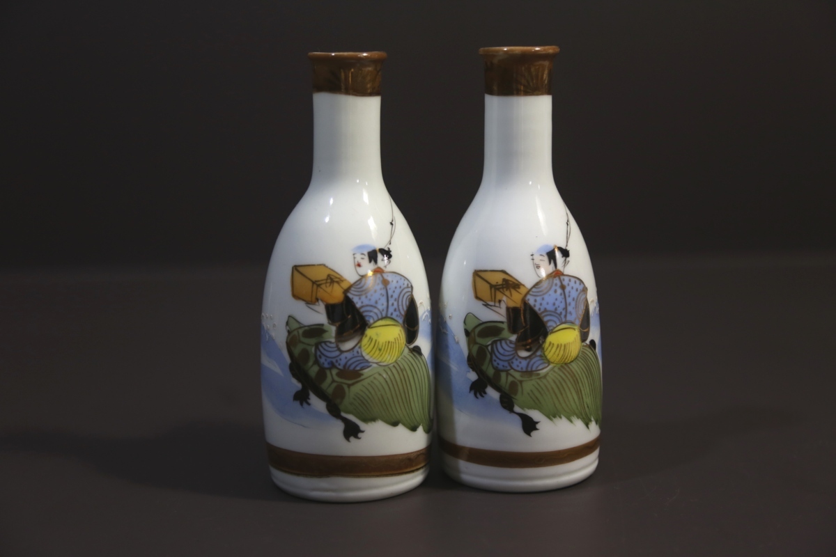 ★★★ アンティーク 九谷焼 浦島太郎 徳利 一対 ★★★