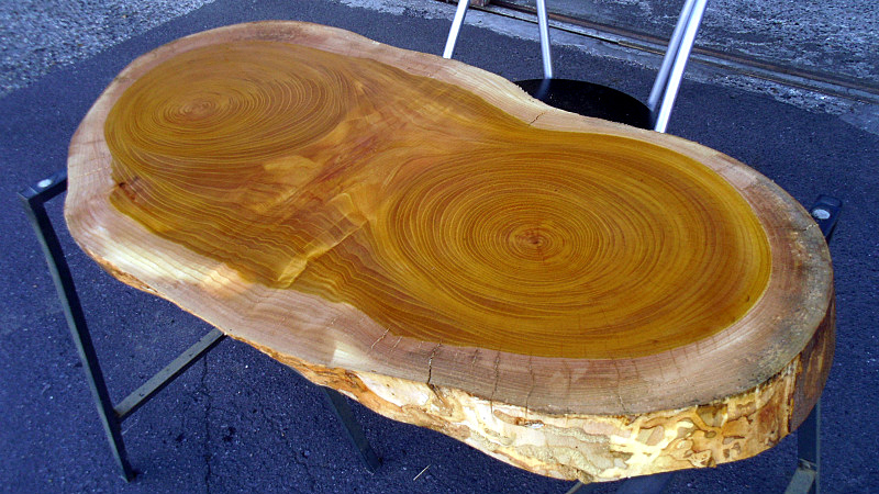 テーブル・デスク・カウンター天板(下仕上げ済み/鋸目板・無塗装)、W 90 x D 36 - 45 x T 6 cm、18 kg 【期間限定価格】 ¥12,800 → ¥5,700 (販売期間:2025年10月26日まで) 6075 送料¥1,200 (北海道・沖縄・その他離島地域:¥ASK) 特記事項 ‐ 同時落札にて一度に複数点お買い上げいただいた場合は、それらの商品のお届け先が同一で、同梱出来る事(総重量25kg以内)を前提として、商品点数に関わらず、1配送につき¥1,200となります。 ‐ 商品お買上合計金額40,000円以上の場合は、送料無料(加工賃・送料・脚材は合算対象に含みません) ‐ 複数ご購入により送料無料となった場合でも総重量が25kg以上となる場合は、以後25kg区分増毎に600円の追加送料を頂戴いたします。 ‐ 送料無料となった場合でも、北海道・沖縄・その他離島地域は、別途、中継料を頂戴いたします。 特徴 ‐ 天然ケヤキの無垢板・1枚板。耐久性および耐朽性にも優れ、木目が力強く美しい事から大変人気のある木材です。 ‐ 鋸目仕上げ・無塗装品(未加工)。面部分は刃跡のある肌触りの粗い粗鋸目板。 ‐ 下仕上済みなので用途や条件によっては、このままの状態でもお使い頂ける仕上がりです。 ‐ 汎用品の脚を取り付ける、又は、既存家具の天板を外して載せ替えるための天板としてもお使いいただけます。 用途 ‐ テーブル、机、デスク、カウンター、ラック、シェルフ、ベンチ、スツール等の天板 etc 特記事項 ‐ 商品画像は木本来の色味を出すため、水を打っています。乾いた状態になると色味は薄くなります。 ‐ 商品画像の色味を出す場合は、オイルフィニッシュすることで同じ色合いに仕上がります。 ‐ 両耳(長辺の丸み・木皮部分)には製材時の固定器具の爪痕が残っている箇所があります。 ‐ 耳(長辺の丸み・木皮部分)および木口(短辺・両端部分)は未加工です。ご希望であれば有料にて仕上げ加工を承ります。 ‐ その他、ご購入後のトラブル防止のため、必ず画面下の「ご購入上の注意」をご確認ください。 商品詳細 ‐ 樹 種:欅(ケヤキ) ‐ 含水率:7.9 % (自然乾燥材) ‐ 仕 様:W 900 x D 360 - 450 x T 62 mm、18 kg ※備考1、2 ‐ 面 :下仕上げ済み(粗鋸目仕上げ) ‐ 両 側:未加工 ※長辺側面の木皮部分:木皮、傷、汚れ、トゲ等が残っています ‐ 両 端:未加工 ※短辺断面のカット部分:チェーンソーによる裁断面の縁にはトゲが残っています ‐ 塗 装:無塗装 ‐ 備考1:奥行D=メイン画像の画面向かって左側360mm → 中央450mm → 右側420mm ※計測位置、方法によって若干前後します ‐ 備考2:厚みTの数値は、3mm~10mm前後する場合があります |