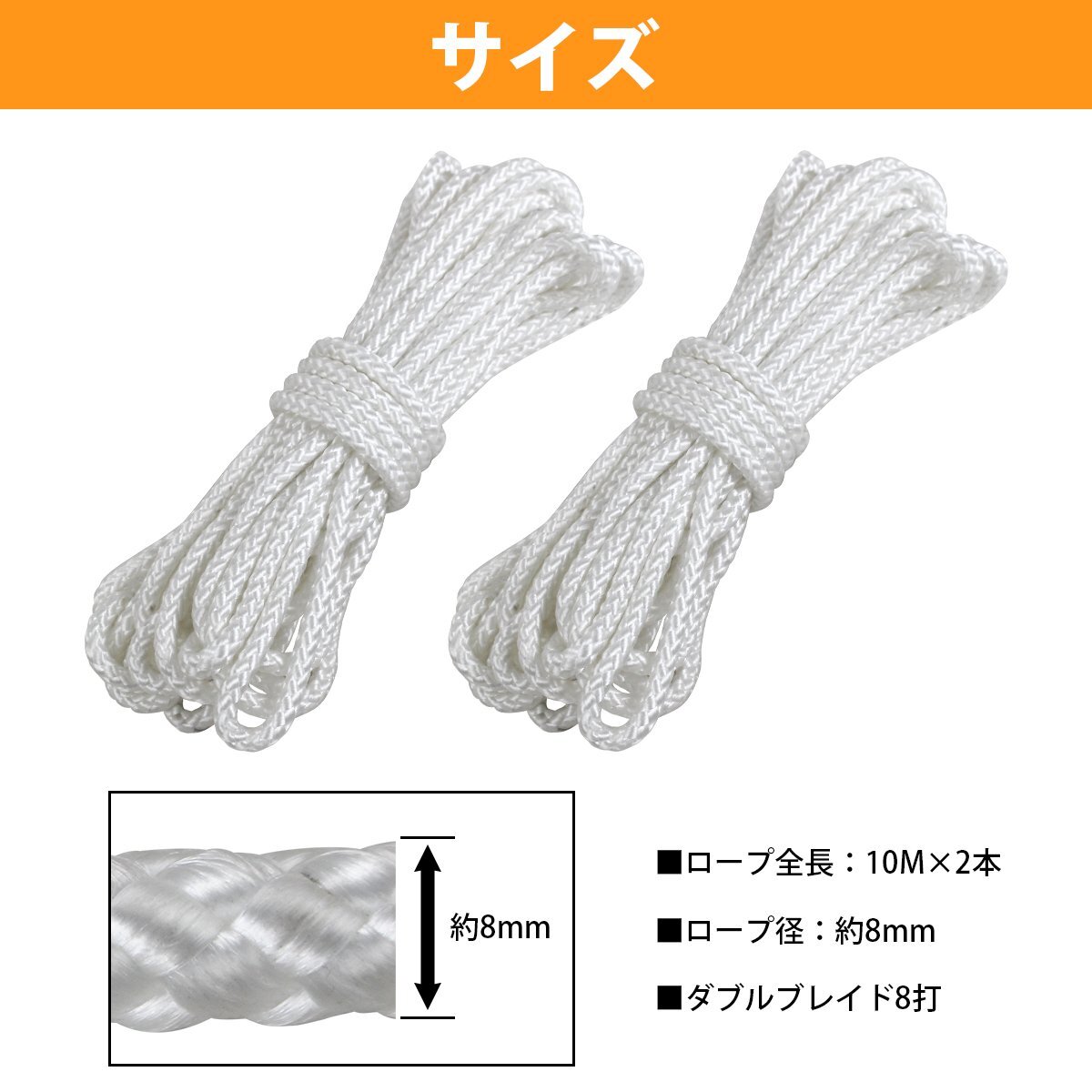 【新品即納】8打 8mm 10m 2本セット 計20m 係留ロープ フェンダーロープ ダブルブレイド 白/ホワイト マリン ロープ 船 係船 8ミリ
