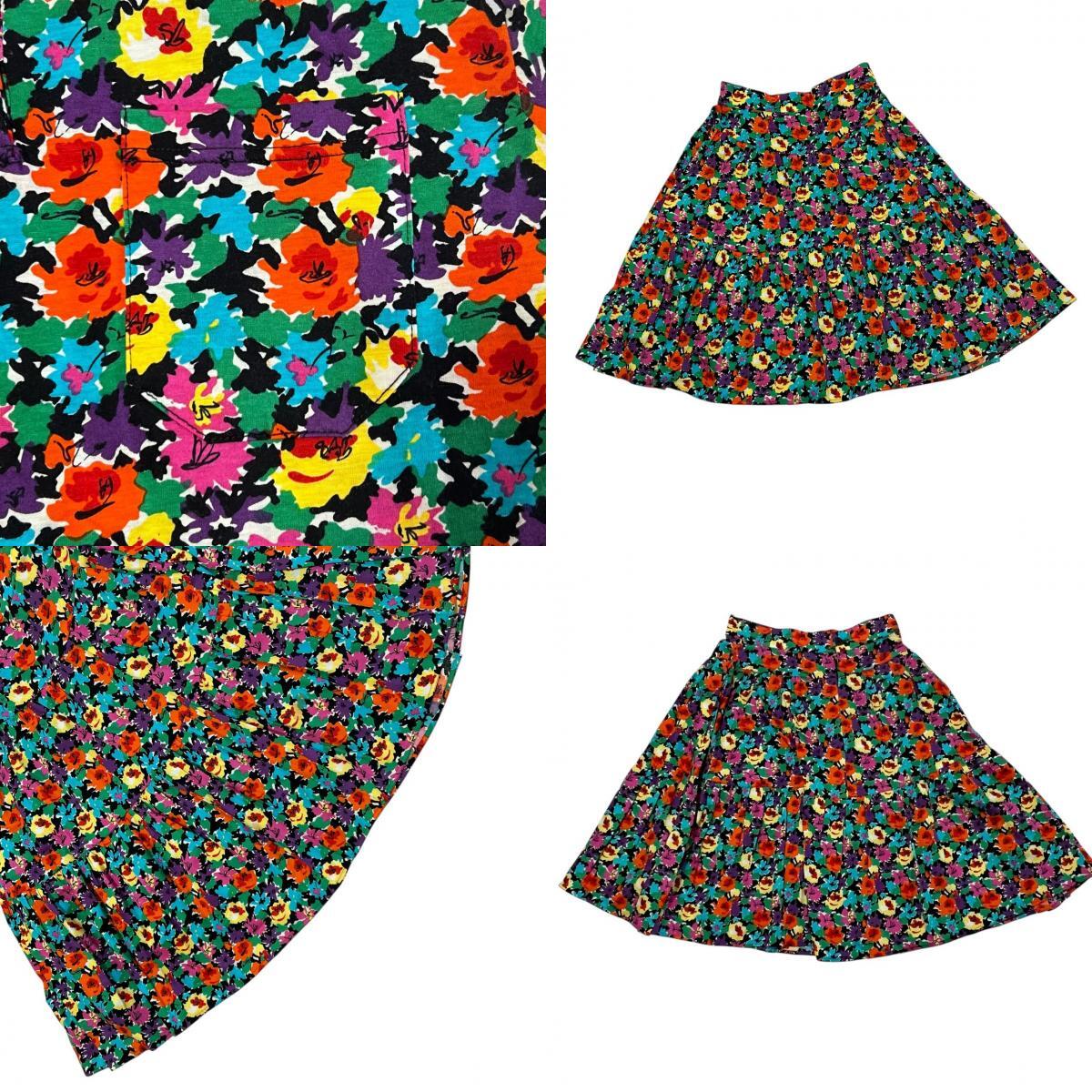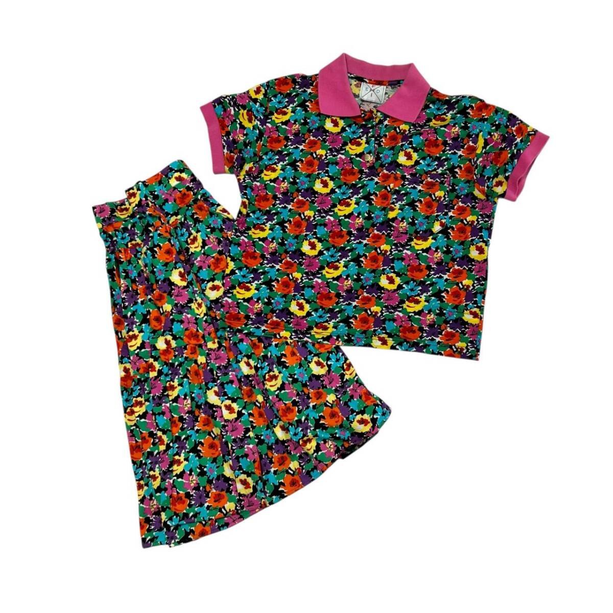 | FENDI フェンディ 半袖ポロシャツ フレアスカート セットアップ 花柄 マルチカラー ヴィンテージ レディース |