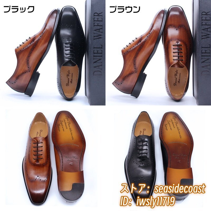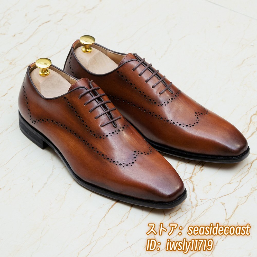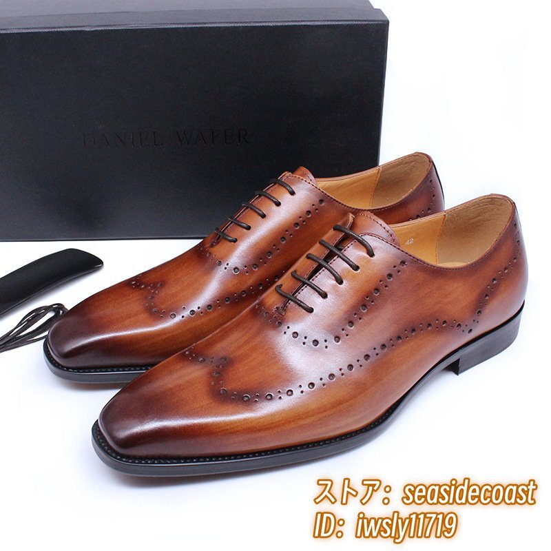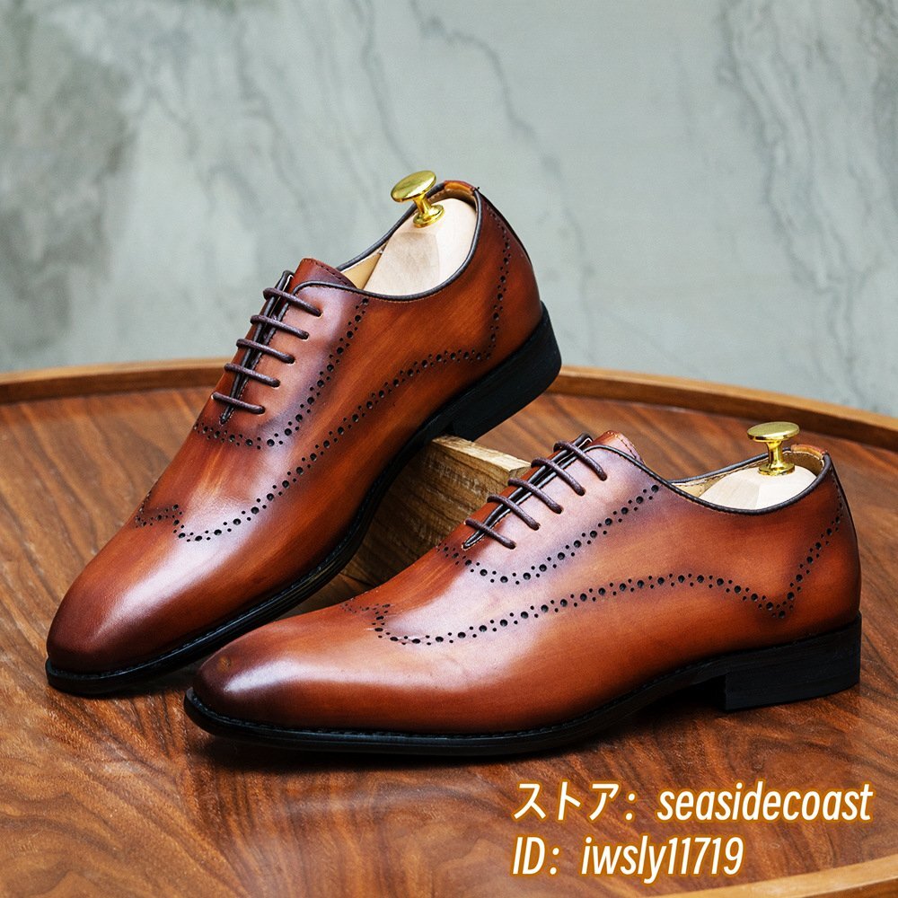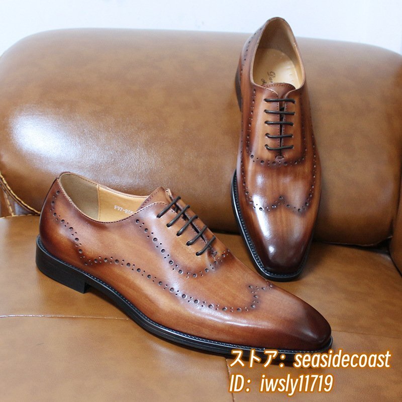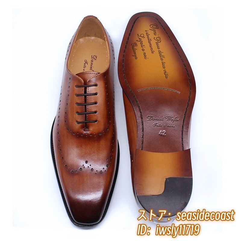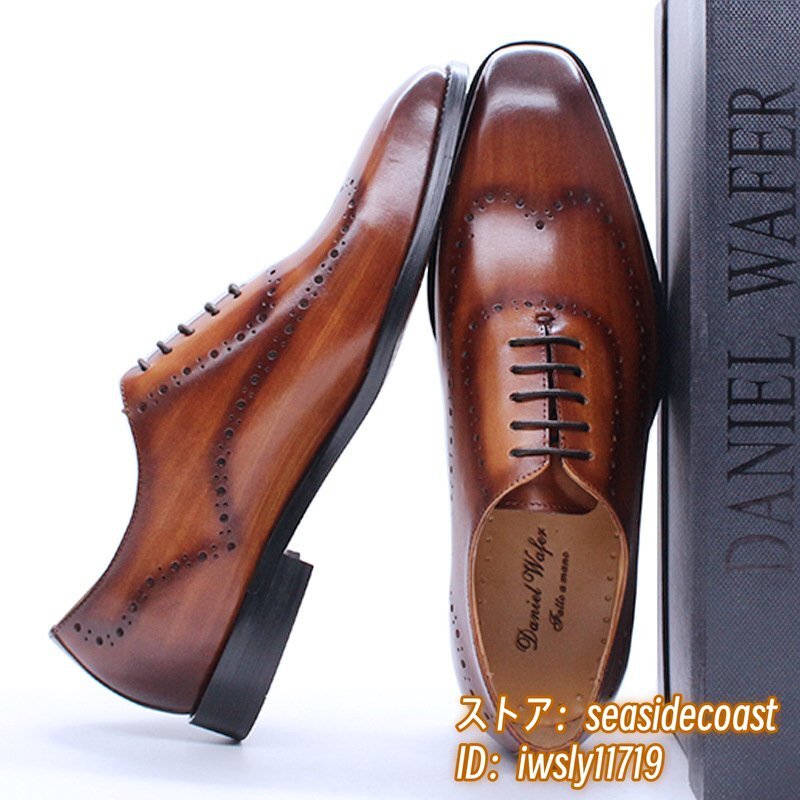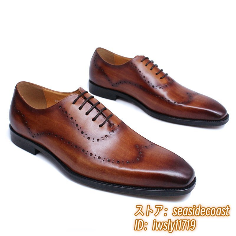 定価11万超■超希少 メンズ ビジネスシューズ 本革 レザーシューズ 職人手塗仕上げ 最高級 牛革 紳士靴 フォーマル 革靴 ブラウン 24.5cm