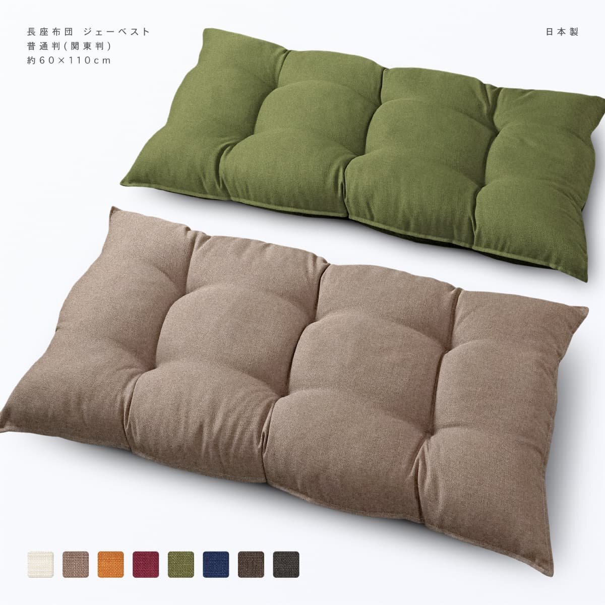 一般的にクッションの中身に使用されているポリエステルわたを使用した、高いクッション性を有した長座布団です。ナチュラルなテイストのジェーベストシリーズ。ざっくり質感がおしゃれながら、無地なのでどんなお部屋にもマッチします。