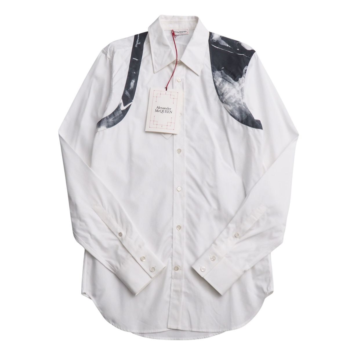 RA1126▽Alexander McQueen アレキサンダー・マックイーン メンズ15 2021 1N4 ハーネスシャツ 長袖シャツ ホワイト×グレー系 | |||