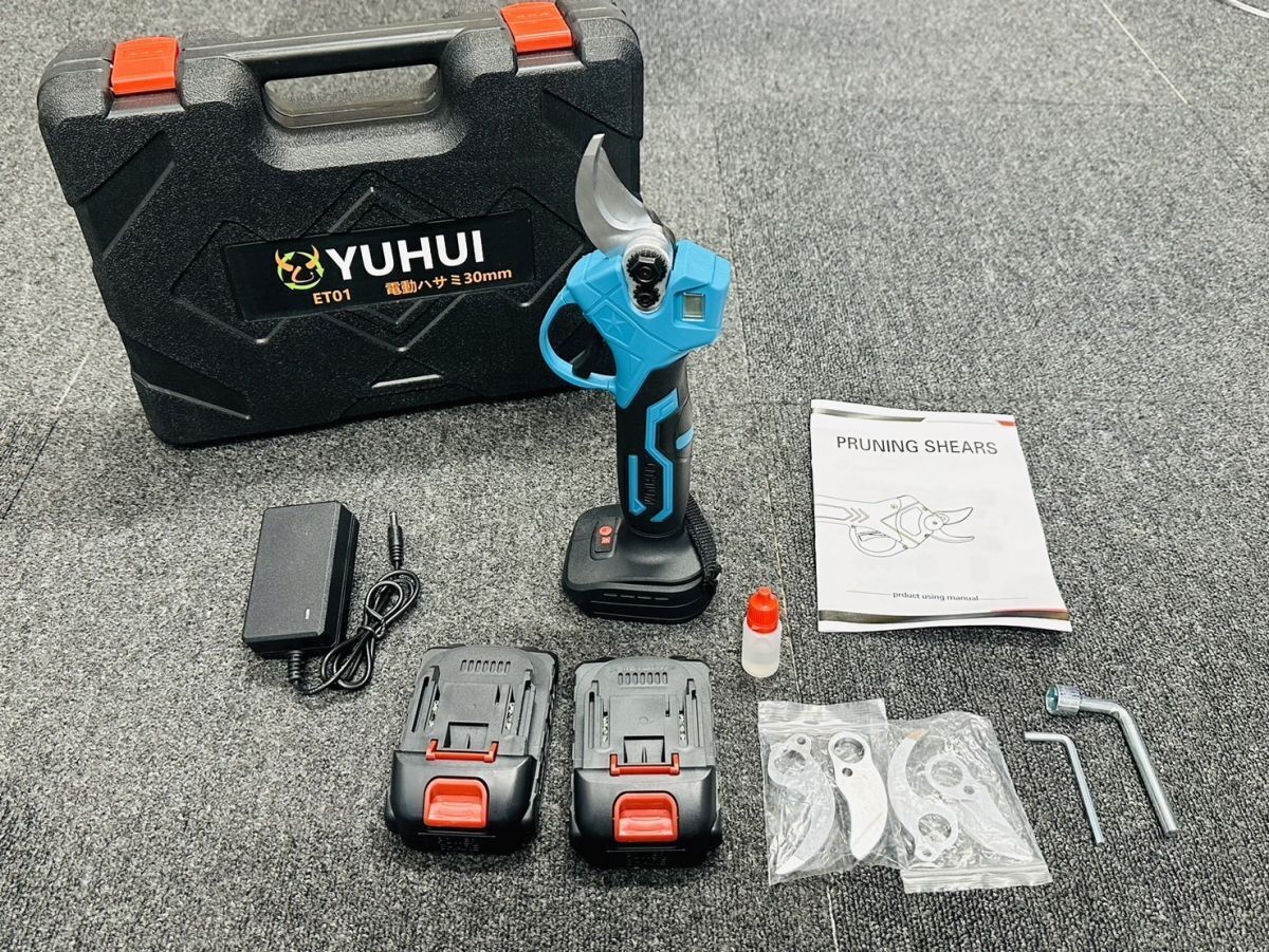 【送料無料・30日間保証付き 】改良版 電動ハサミ 充電式 切断直径30mm 庭木/枝切り/果樹用 剪定鋏 剪定用具 バッテリー2個替え刃4枚付属