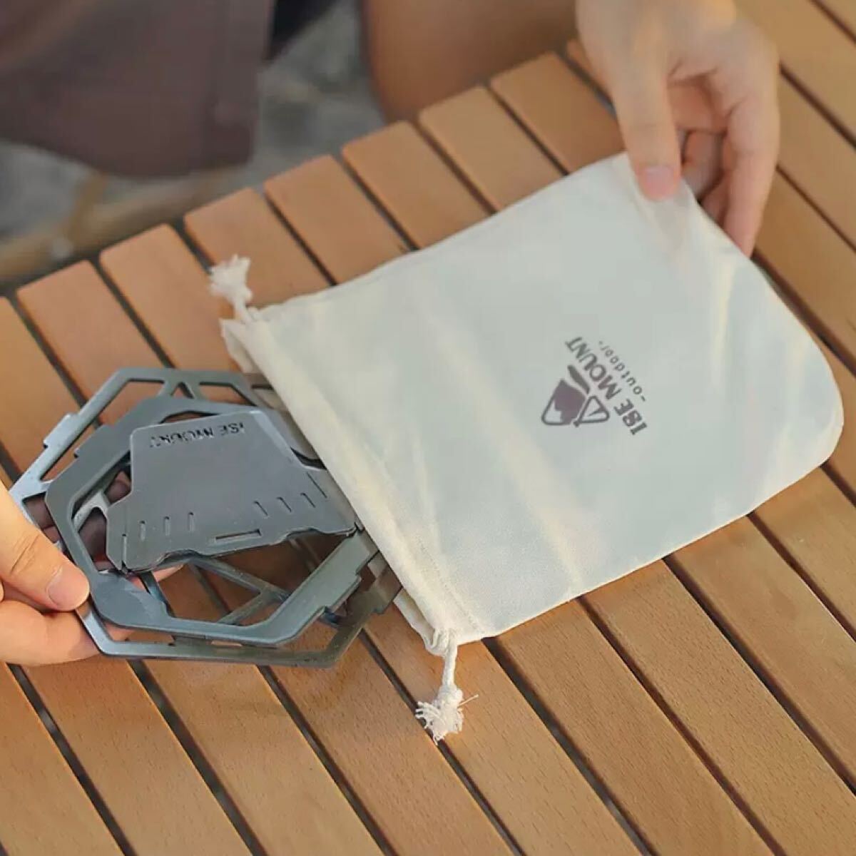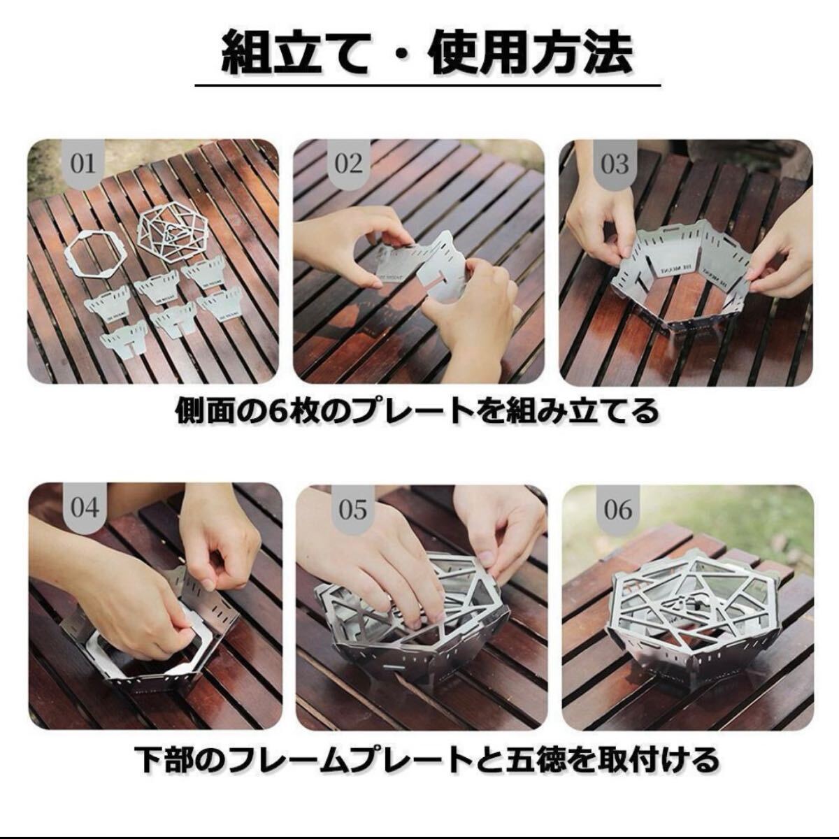 組み立て式の風防五徳、収納時スリムで持ち運びに便利!
