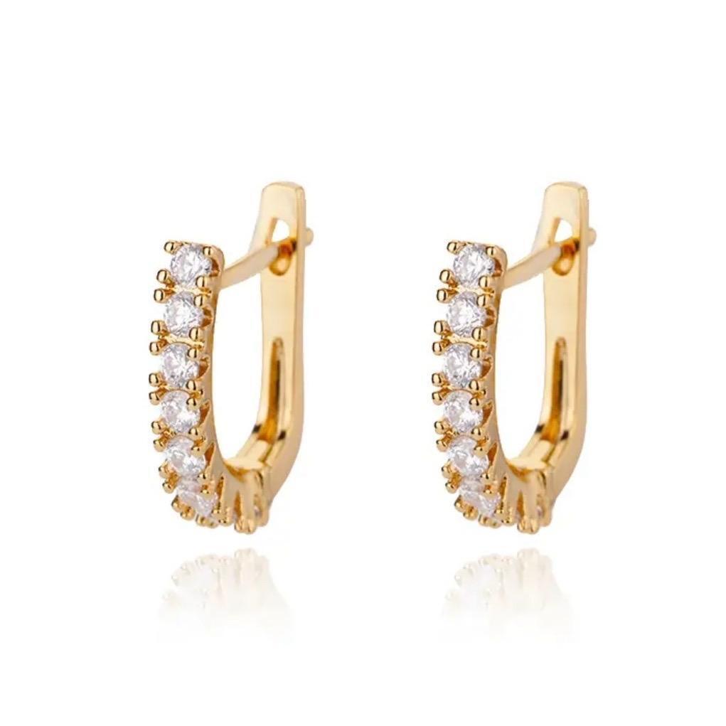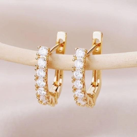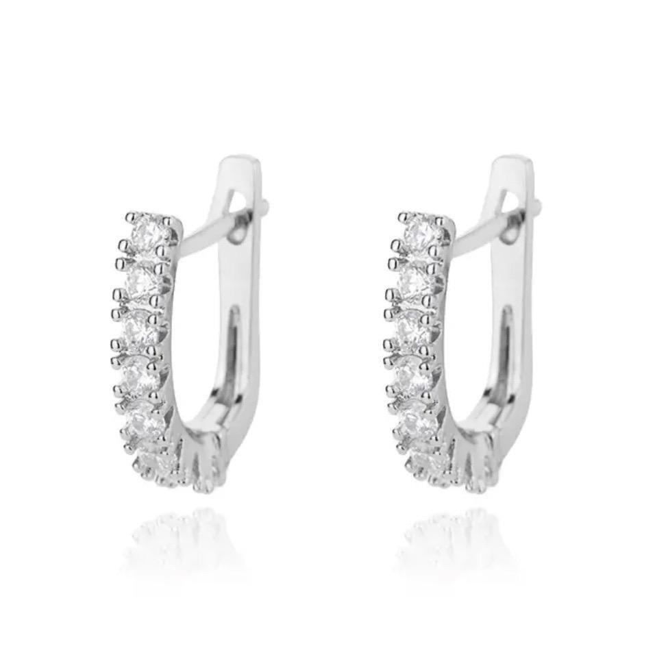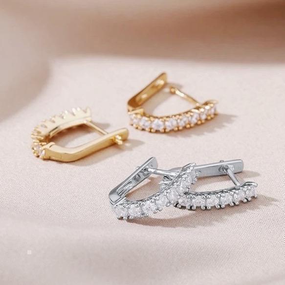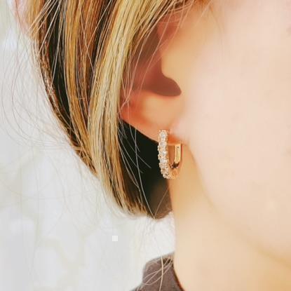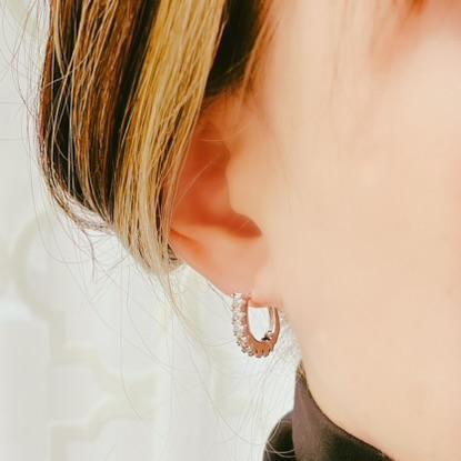 輝きの美しい約2.5mmのキュービックジルコニアを贅沢に8石、ラインストーン状に留め付けた、ジュエリーのような中折れタイプのフープピアス♪