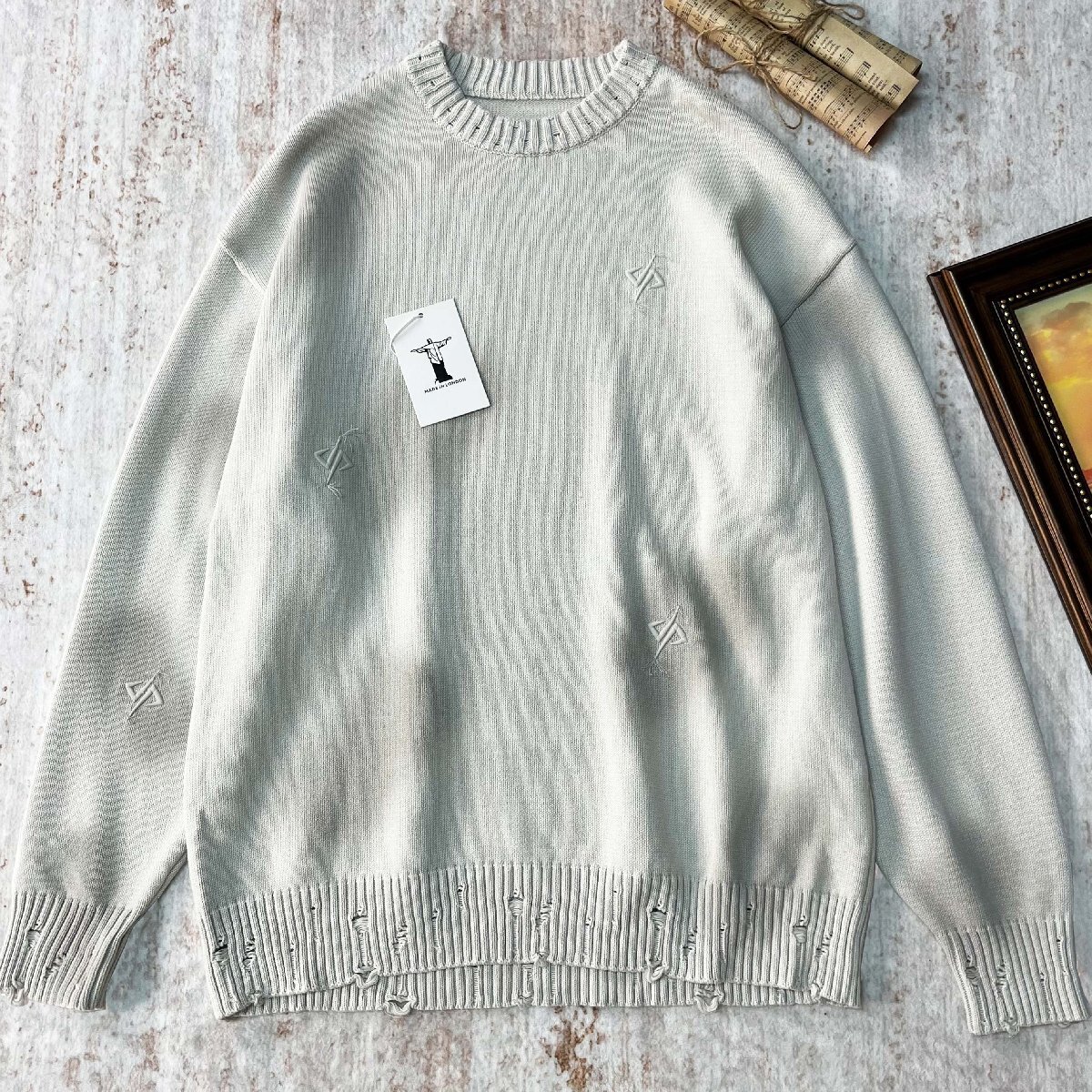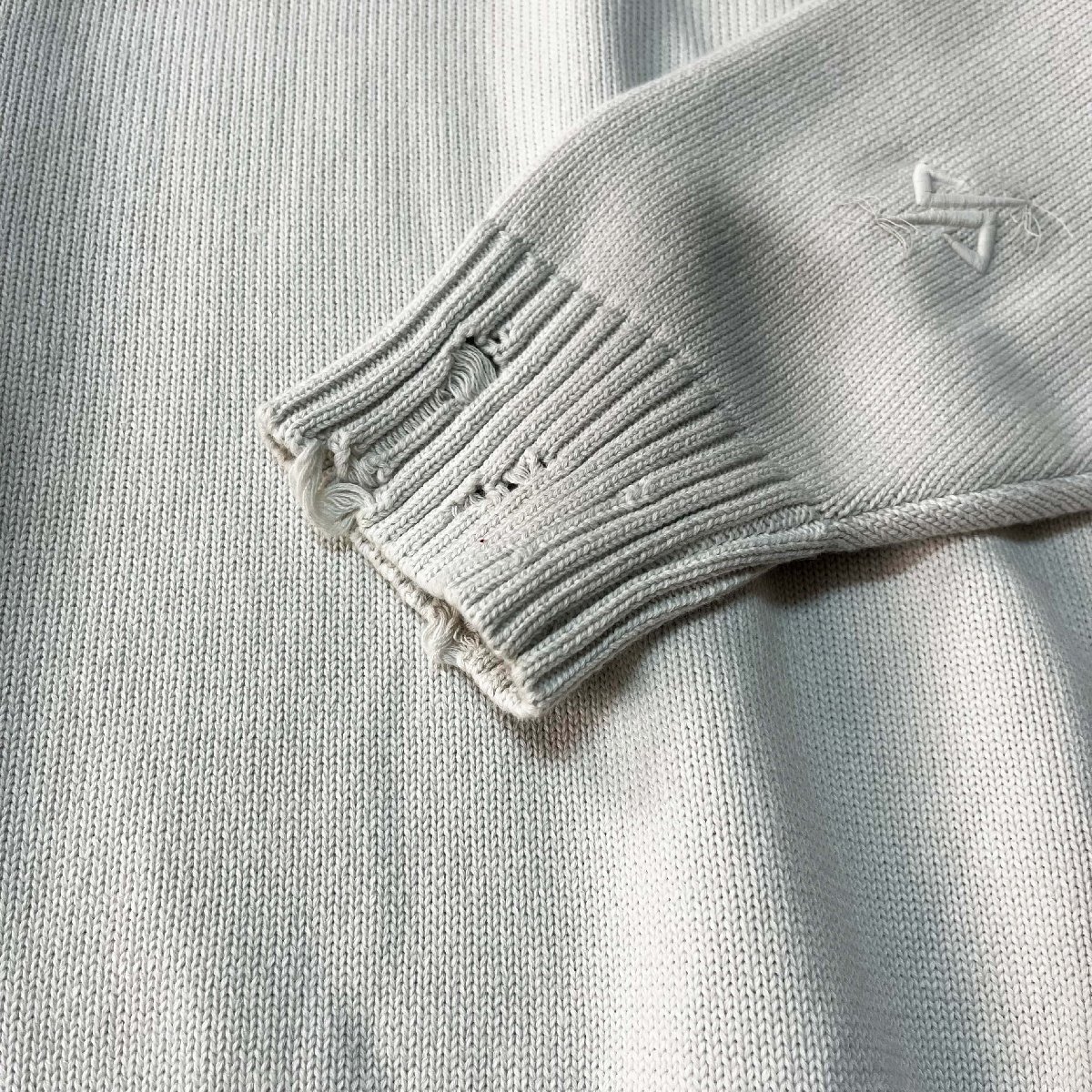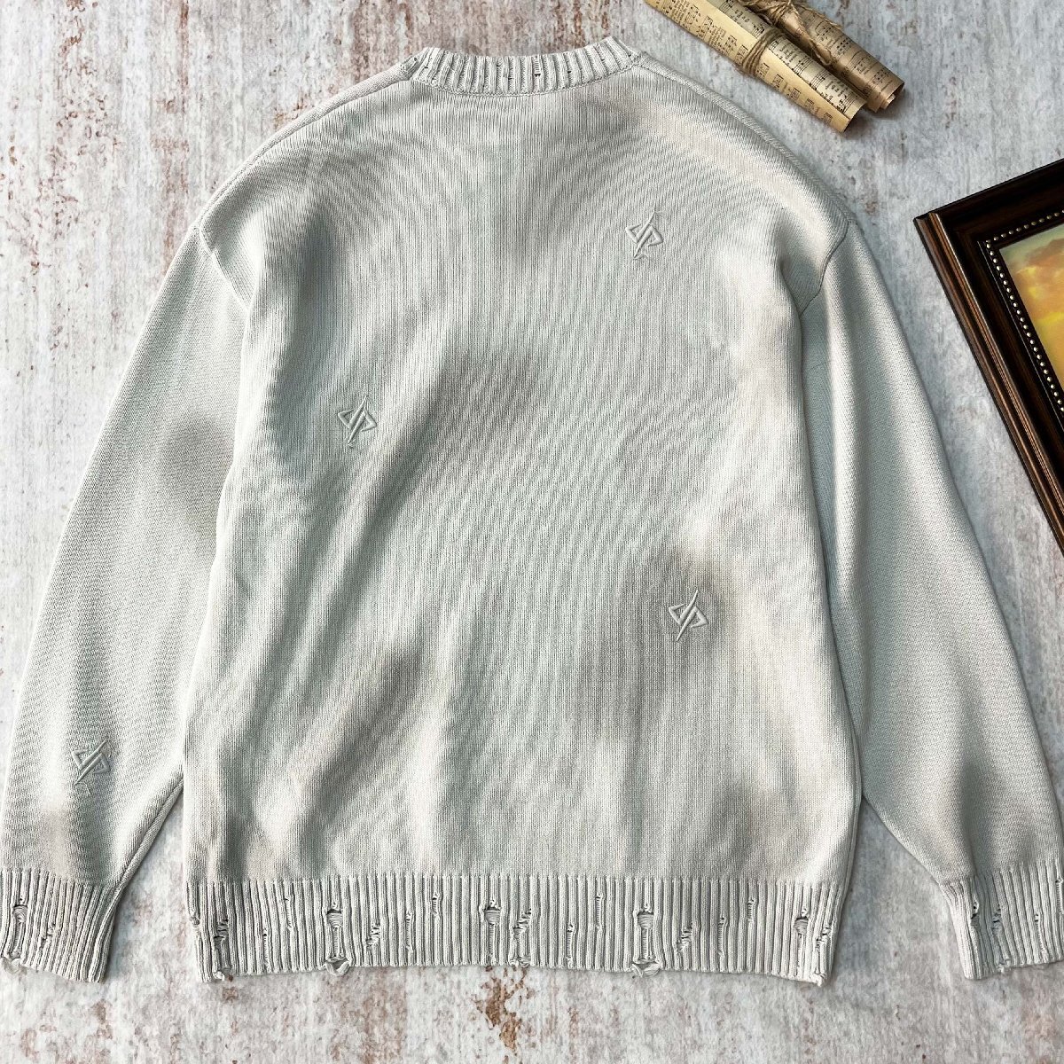 セーター ロンドン製造 ウール混 柔らかい 暖かい 無地 ダメージ加工 ヴィンテージ 刺繍 クールネック 長袖 トップス カッコイイ SIZE:XL