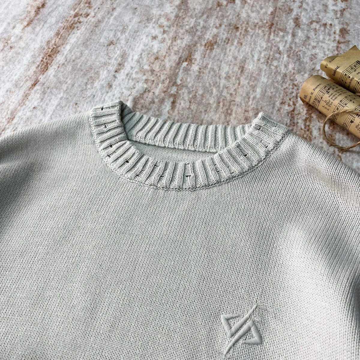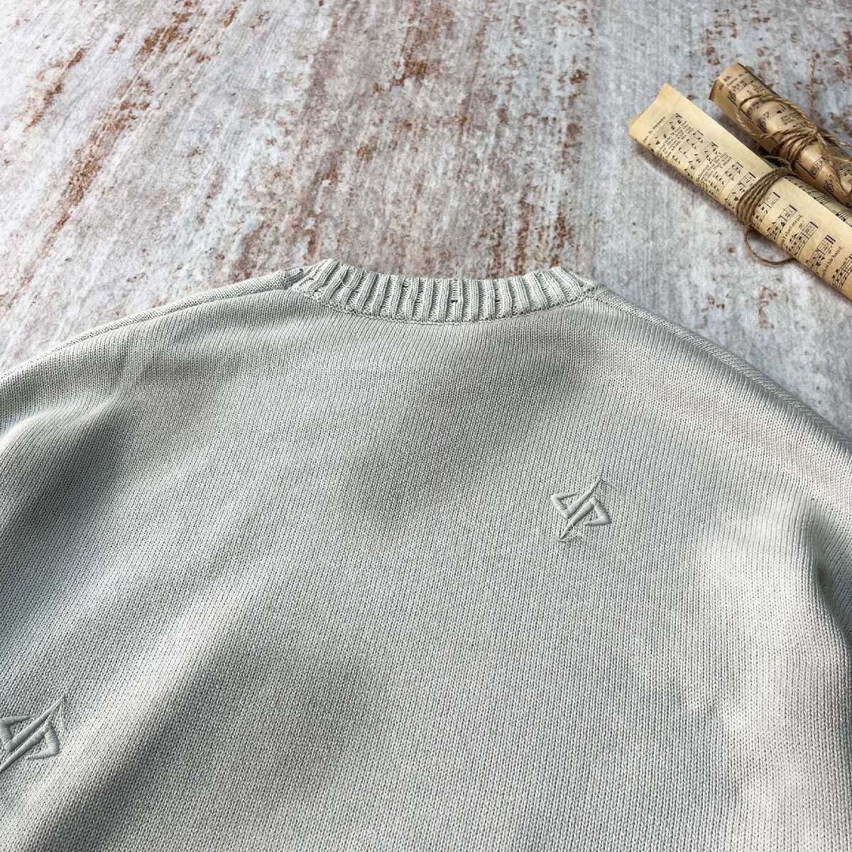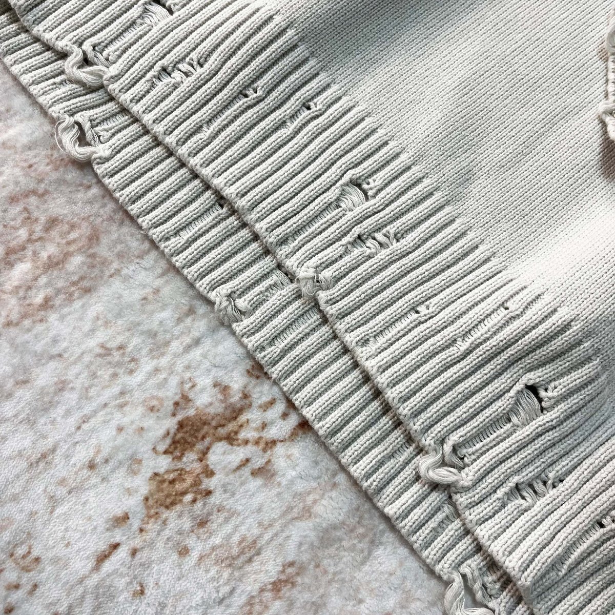 セーター ロンドン製造 ウール混 柔らかい 暖かい 無地 ダメージ加工 ヴィンテージ 刺繍 クールネック 長袖 トップス カッコイイ SIZE:XL
