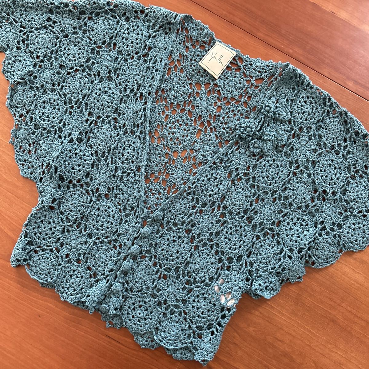 ボレロはレース編みカーディガン、フリルエッジ付きのデザイン。ワンピースやドレスにきれいに合わせていただけます。
