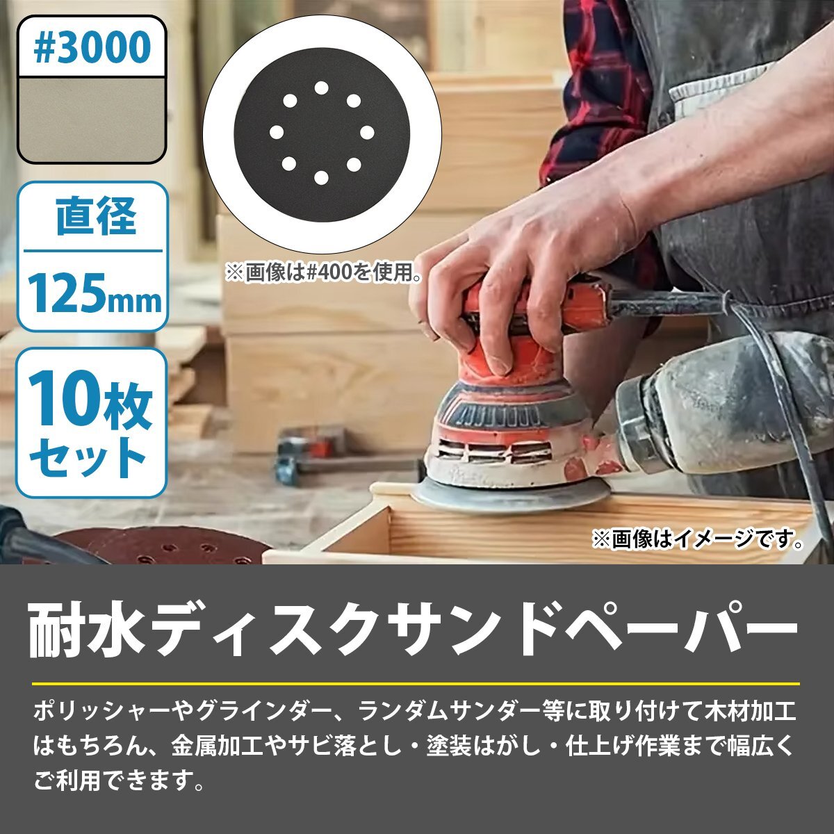 【送料250円】耐水 3000番 10枚 125mm サンドペーパー 丸型 8穴 サンダー マジックパッド ディスク ペーパー 紙やすり #3000 極細目
