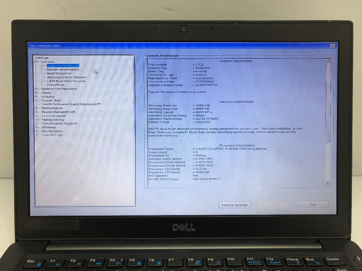ジャンク/ Dell Latitude 7290 Intel Core i3-8130U メモリ4.1GB SSD256.06GB 【K21426】