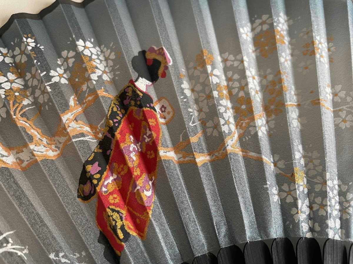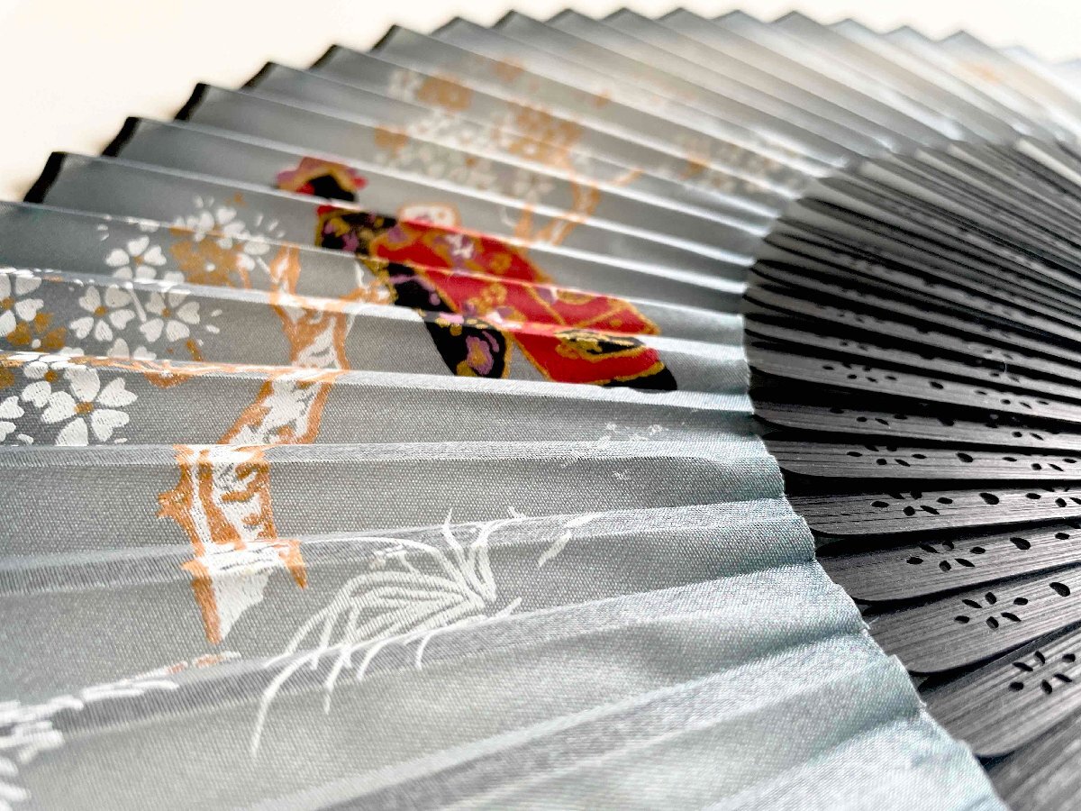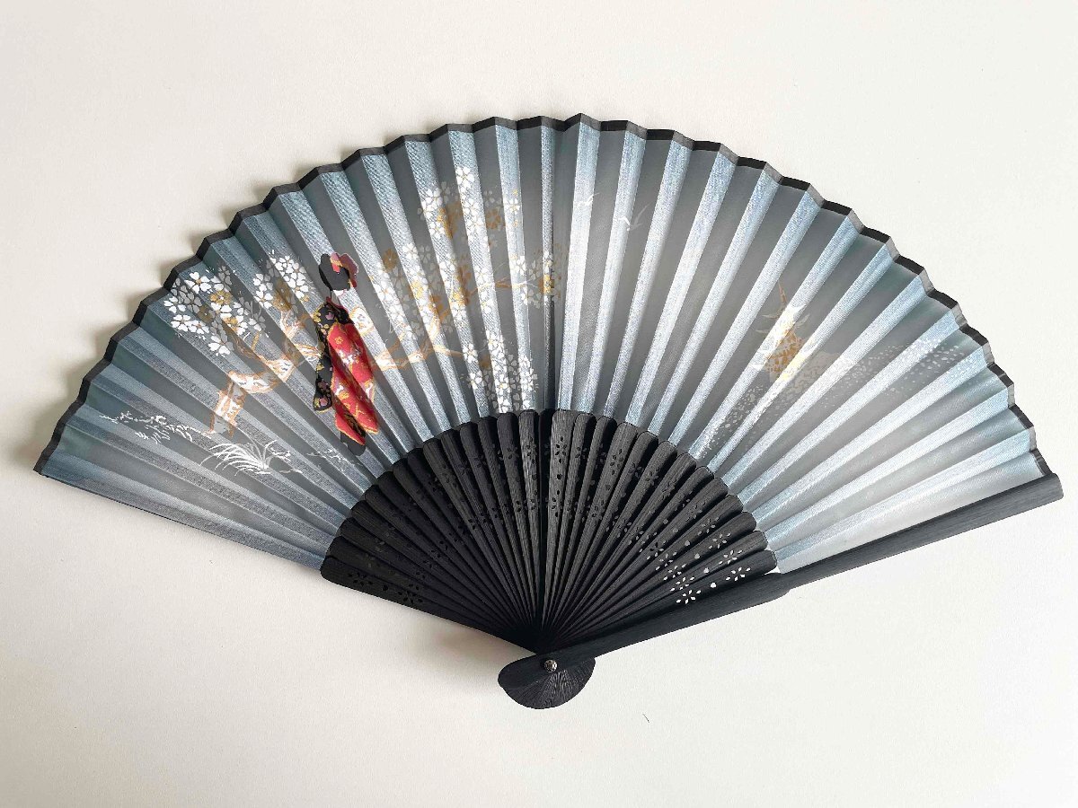 シックな舞妓さんのイラストに和の趣を楽しめる扇子です