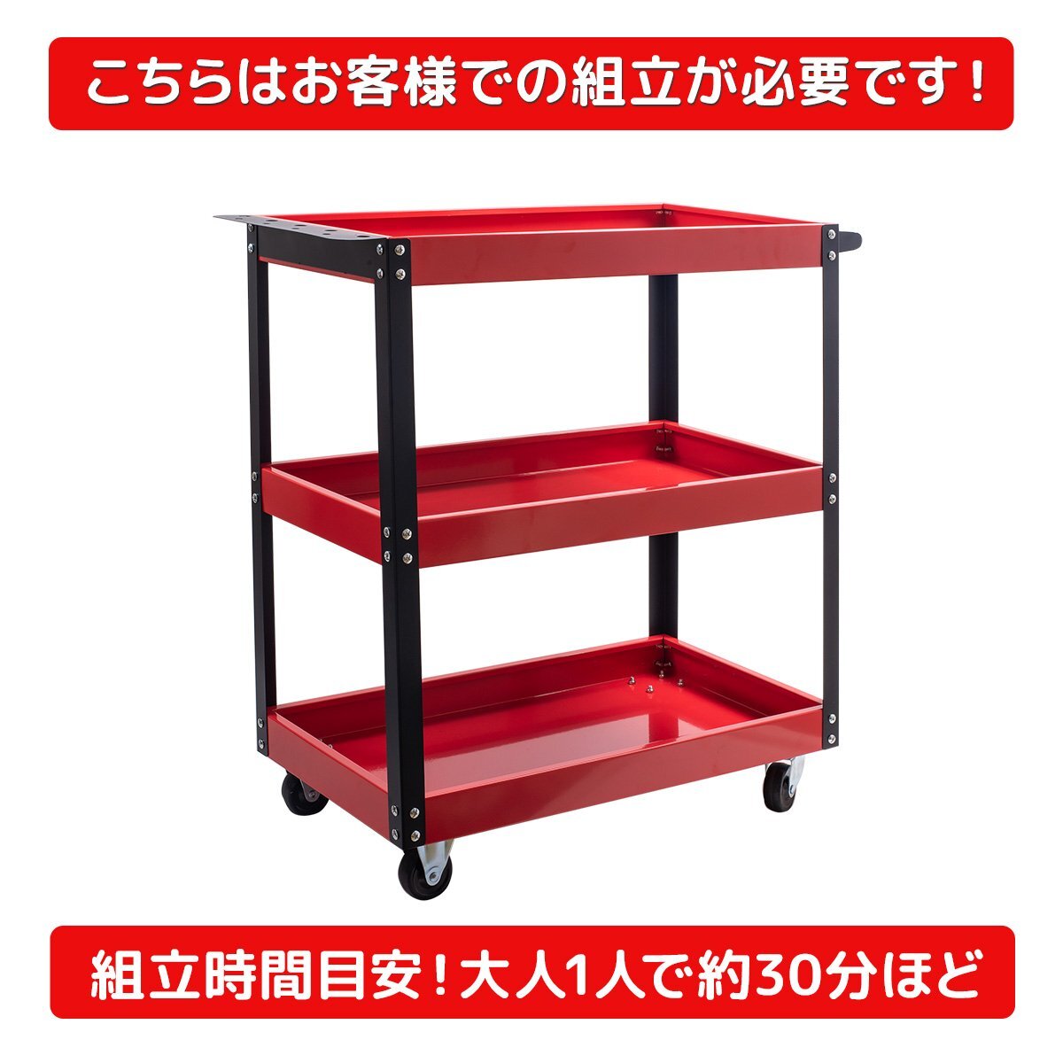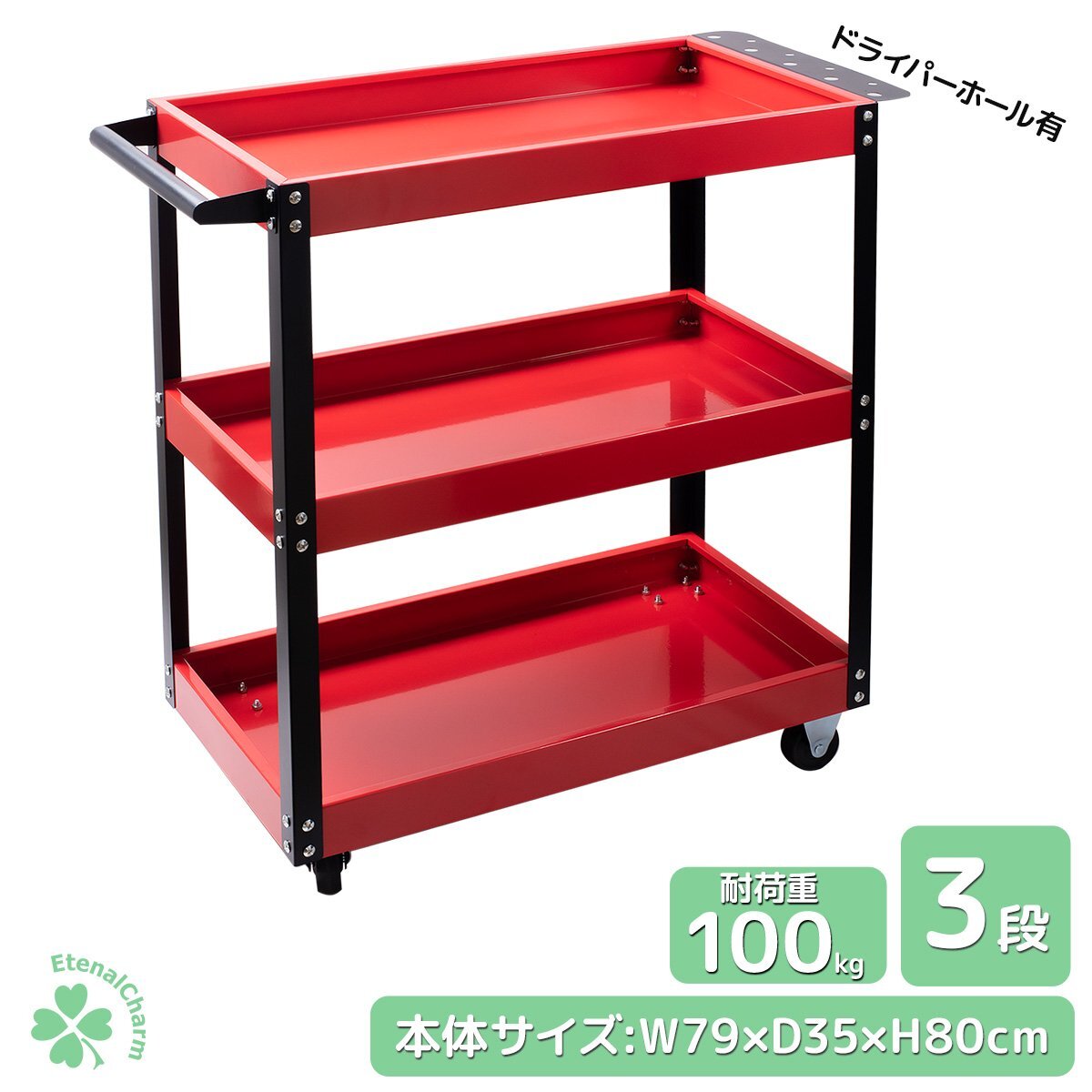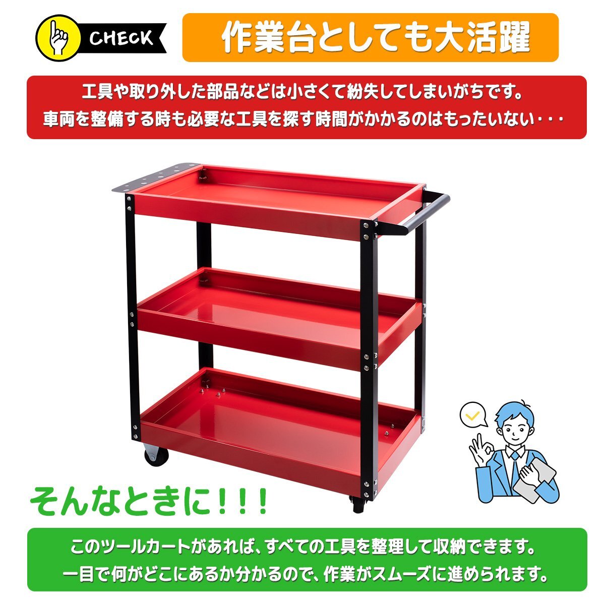 【送料無料】ツールカート 工具ワゴン 3段 キャスター付き 360°回転 深型トレイ 鉄製 マグネット対応 作業台 車 バイク ガレージ 収納