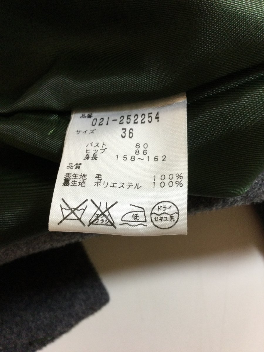管理番号:10^137089 ボッシュ グレーウールコート 表示サイズ:36 実寸(参考)