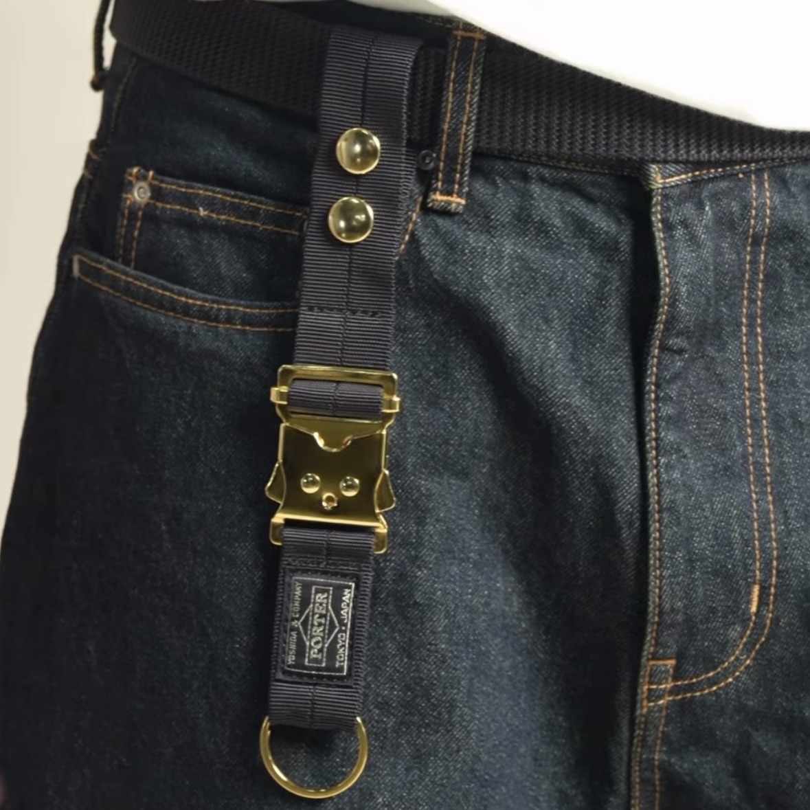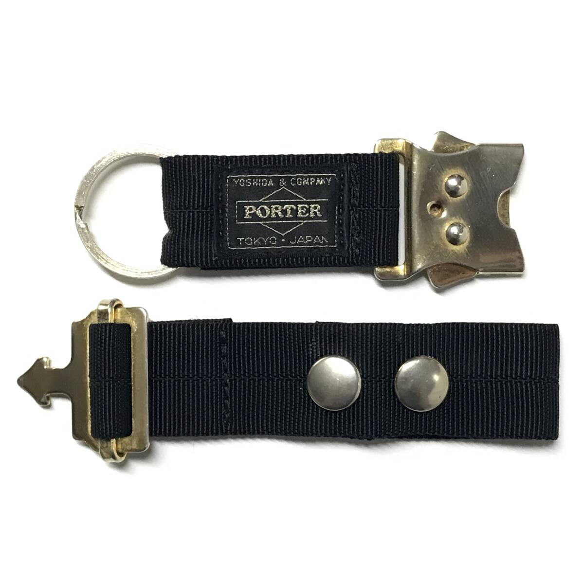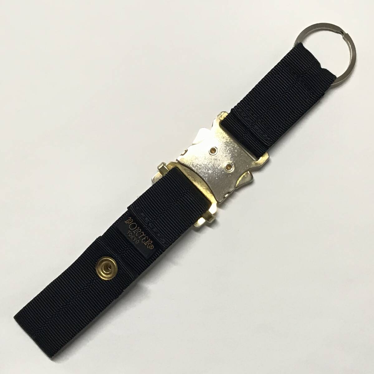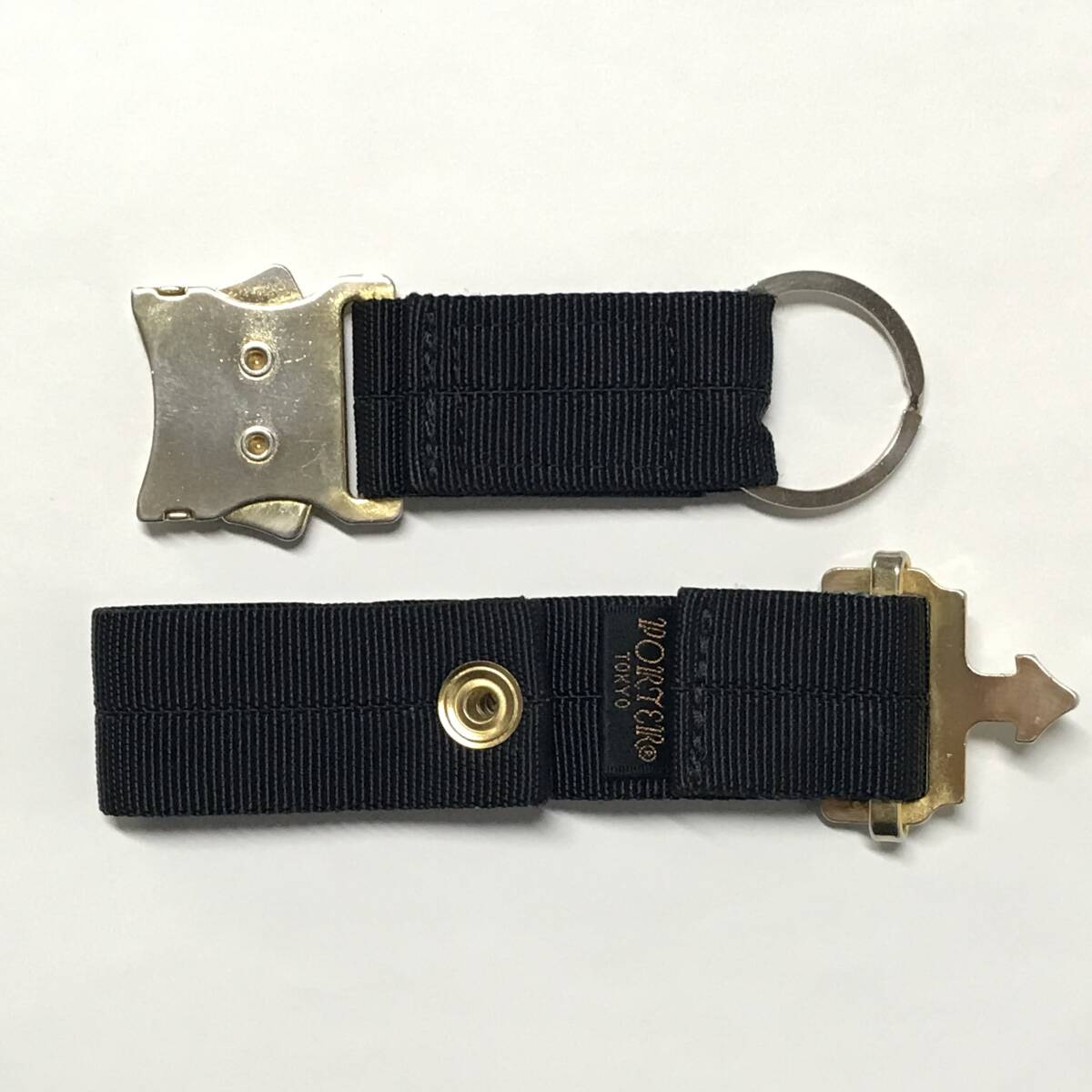 PORTER JOINT KEY HOLDERです。 PORTERオリジナルのバックルを採用した、取り外し可能なキーホルダーです。 高強度なナイロンテープにホックボタンを2段取り付け、 バッグやベルトなど様々なアイテムや場所に装着することができます。 先端の二重リングには鍵やアクセサリーなどを取り付けたり、 自分仕様にアレンジしてお使いいただけるのも魅力です。 |