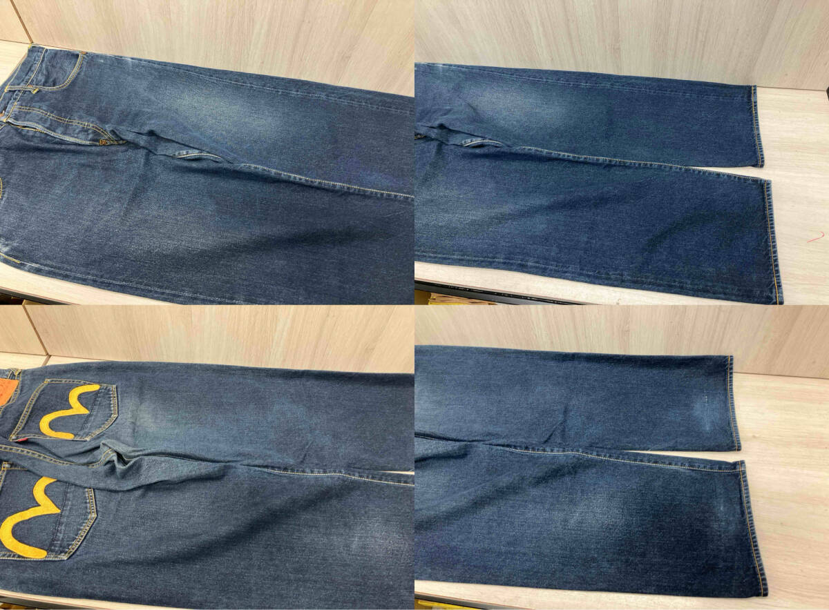 画像のものが全てです。 【ブランド名】 EVISU 【表記サイズ】 36 【平置きサイズ】 ウエスト: 約44cm ヒップ:約60cm 股上:約32cm 股下:約70cm ・裾幅:約23cm ・わたり幅:約34cm サイズ表記 (〜cm位) は目安です。ブランドやデザインによって多少前後する場合がございます。予め ご了承の上ご注文ください。 【状態説明】 全体的に使用感あり、全体的にスレあり、裾周りに汚れあり |