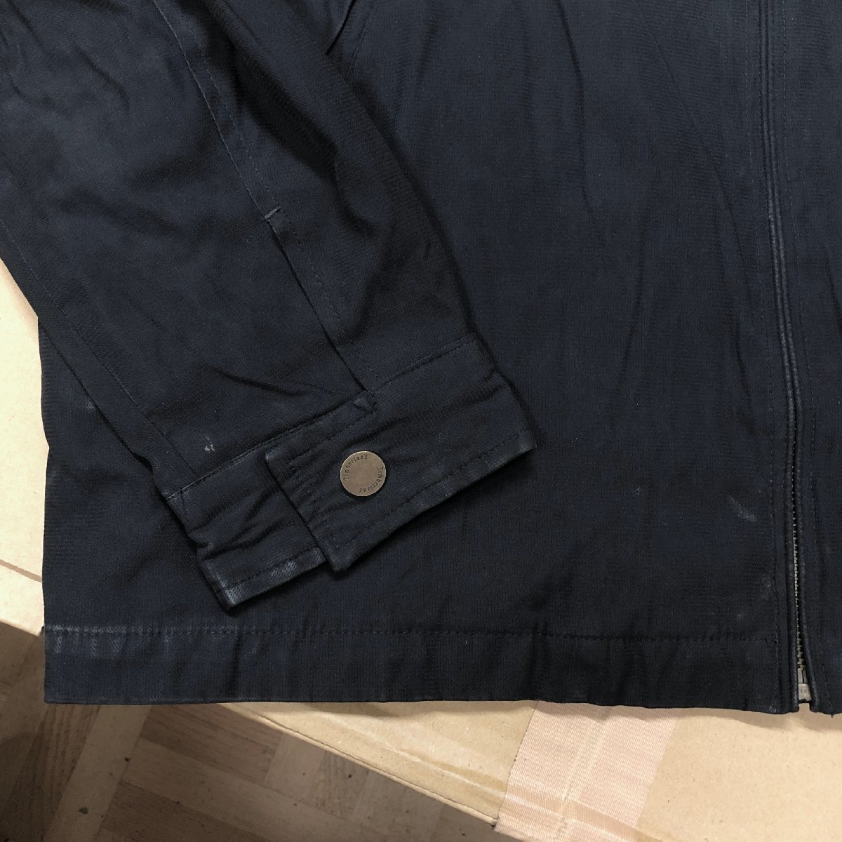 中古品です。使用感があります。両袖に薄汚れ、襟や袖先、裾に擦れがあります。