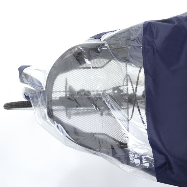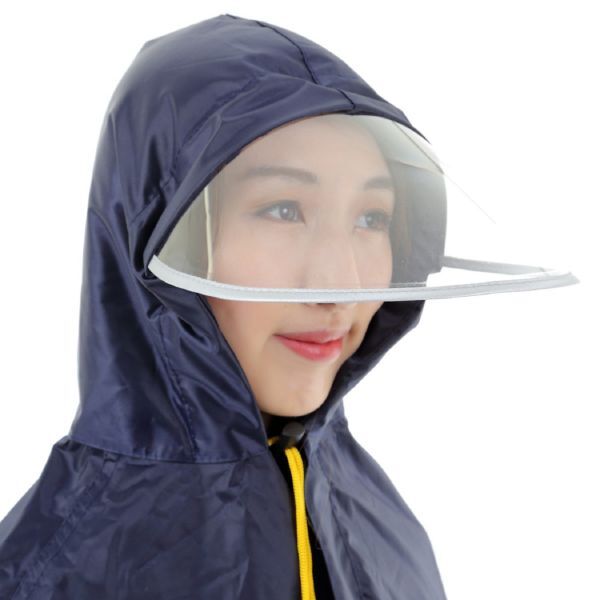 ・大きな透明のつば付きフードで、雨を除け、上方や左右の視界を遮りません。