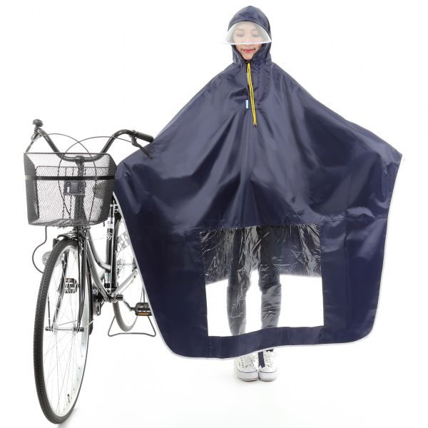 足元が見える ポンチョ 自転車用 バイク用 雨合羽 レインコート 男女兼用 フリーサイズ(マリンブルー)