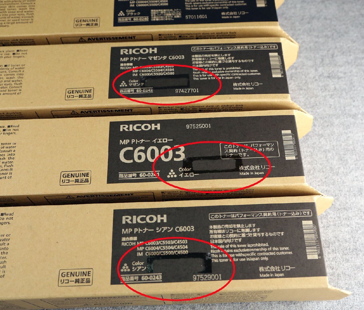 | 商品名 | imagio MP Pトナー C6003 4色4本セット+廃トナーボトル IM C6000 |