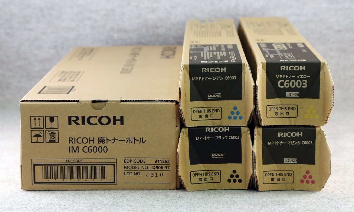 | K★RICOH(リコー)◇imagio MP Pトナー C6003 4色4本セット+廃トナーボトル IM C6000 ◇ 純正品・未使用 |