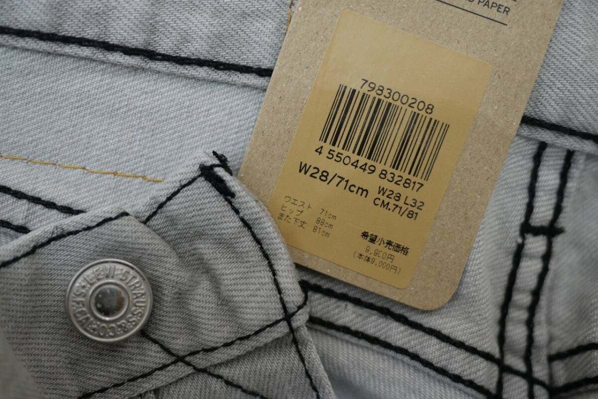 ・新品リーバイス79830-0208 W28 501 '93 オリジナルフィット ユーズド・ライトグレー ボタンフライ ストレッチデニム 1着